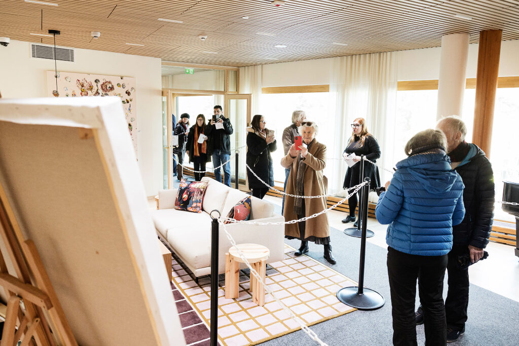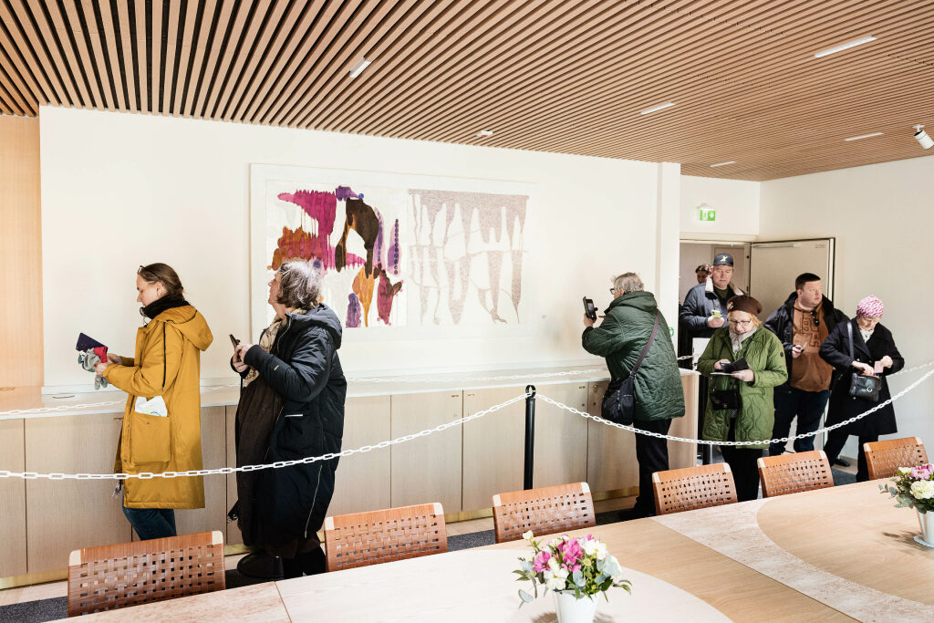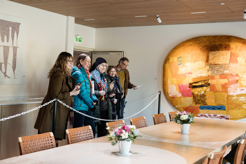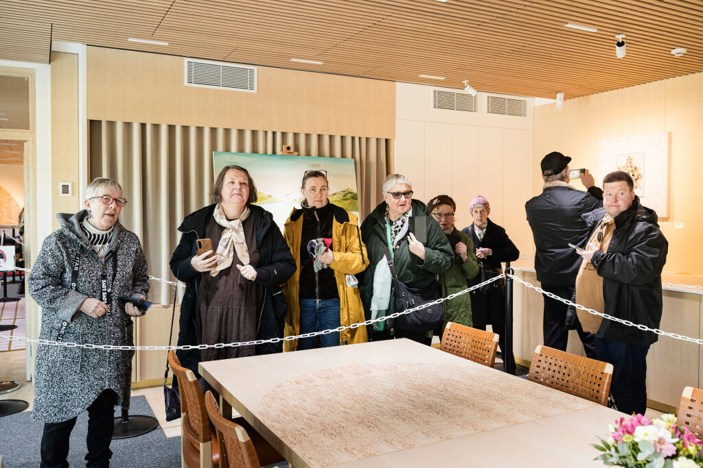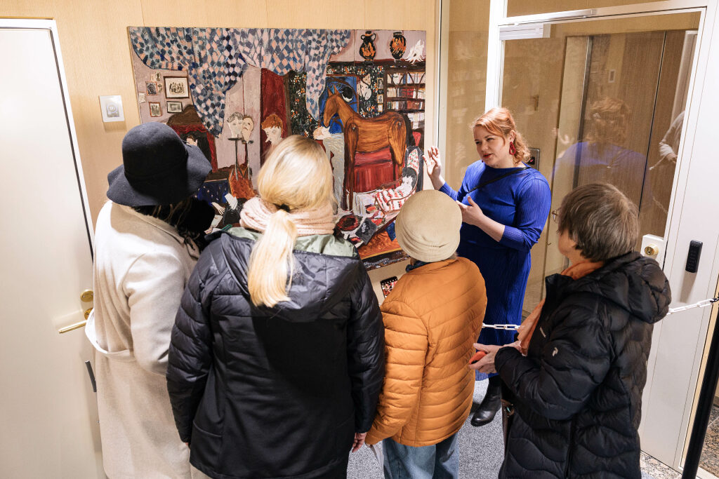 Kierroksella yleisö tutustui tiloihin omatoimisesti, mutta paikalla oli presidentin kanslian henkilökuntaa sekä esillä olevien teosten taiteilijoita vastaamassa mahdollisiin kysymyksiin.