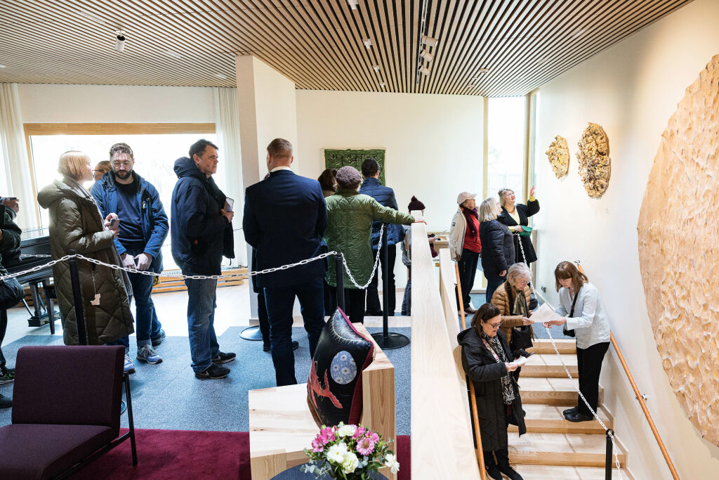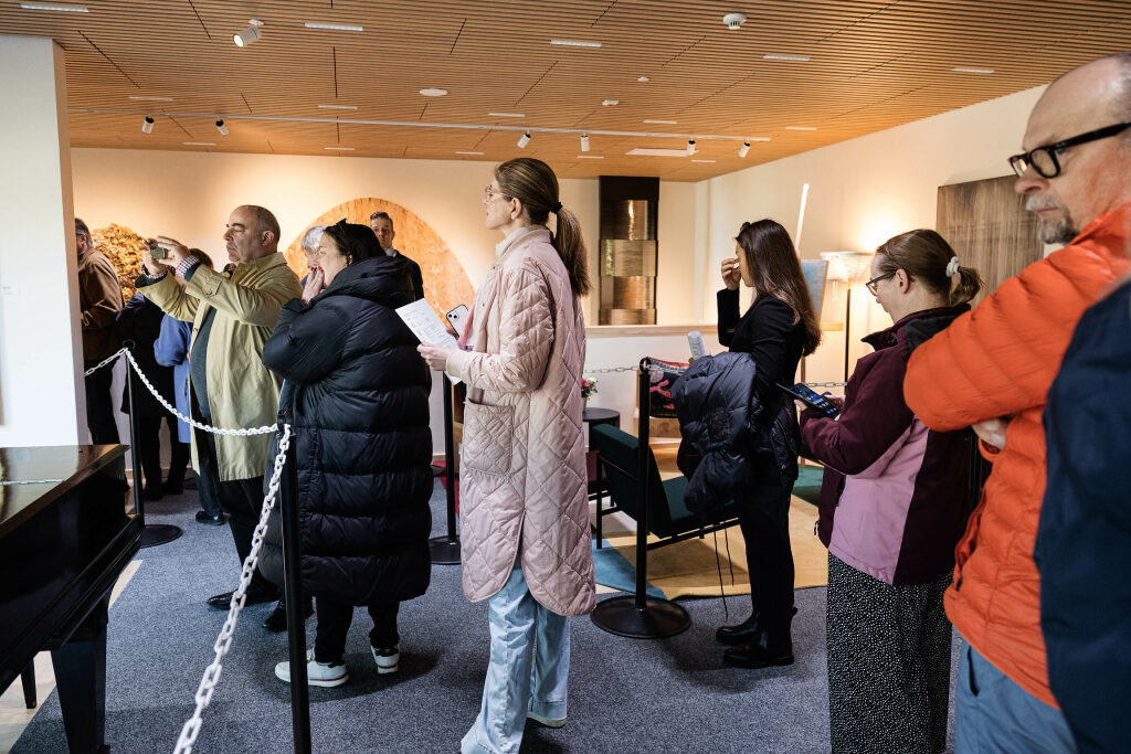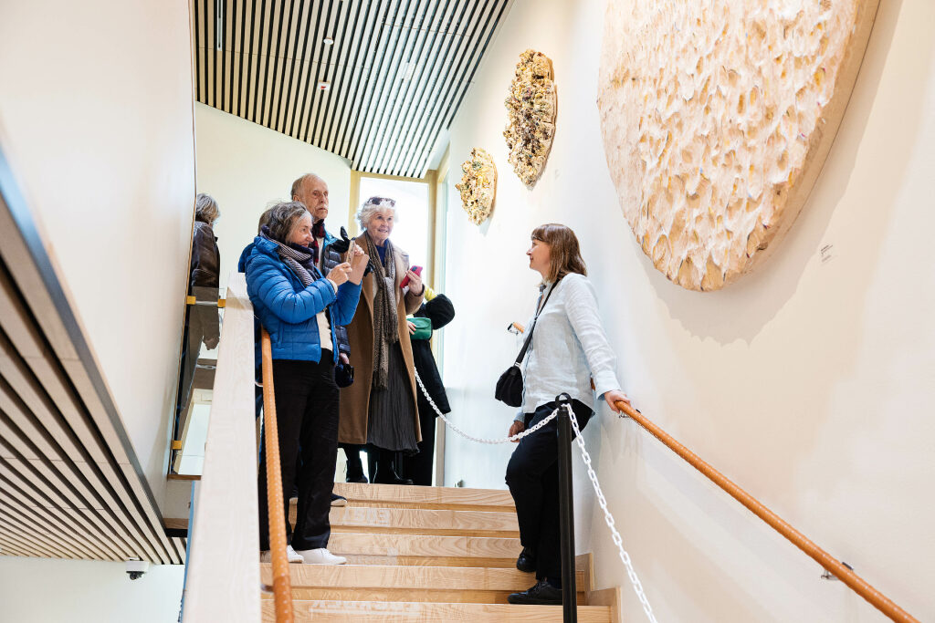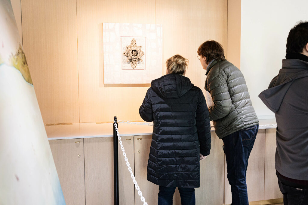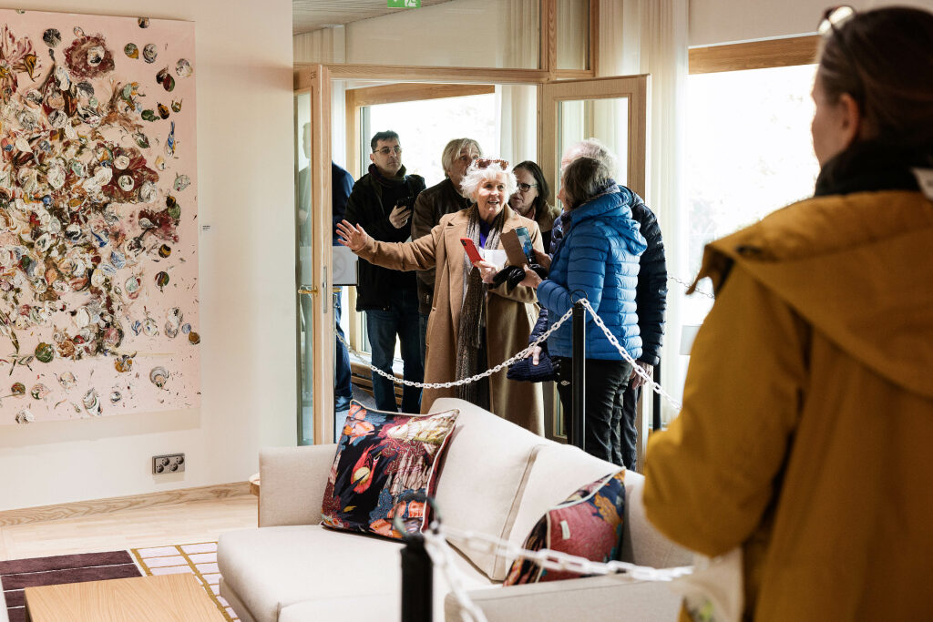 Kierroksella yleisö tutustui tiloihin omatoimisesti, mutta paikalla oli presidentin kanslian henkilökuntaa sekä esillä olevien teosten taiteilijoita vastaamassa mahdollisiin kysymyksiin.