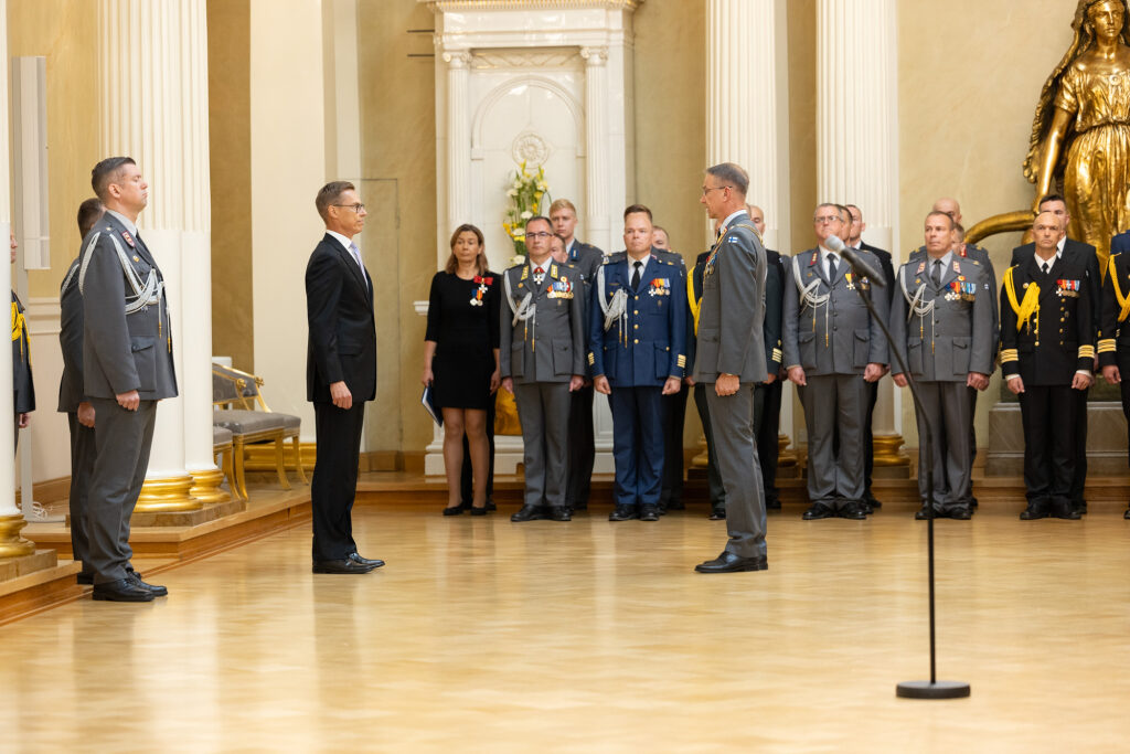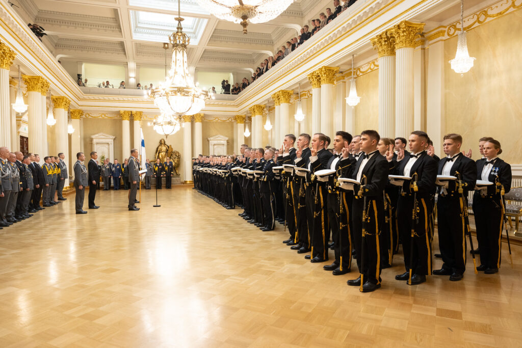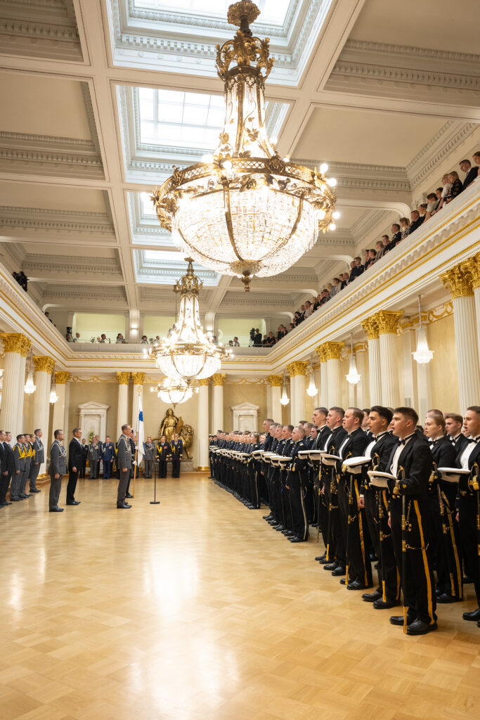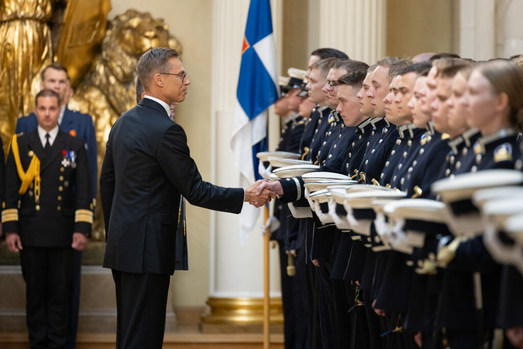 President of the Republic of Finland Alexander Stubb promoted cadets graduating from the National Defence University to the rank of lieutenant on Friday 30 August 2024 at the Presidential Palace in Helsinki. Photo: Emmi Syrjäniemi/Office of the President of the Republic of Finland