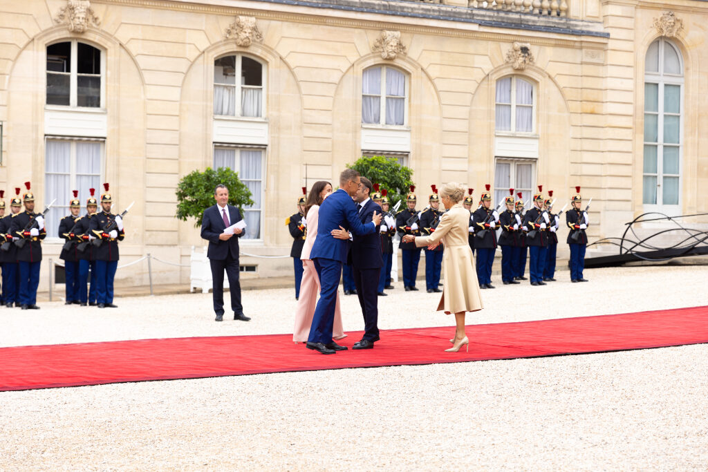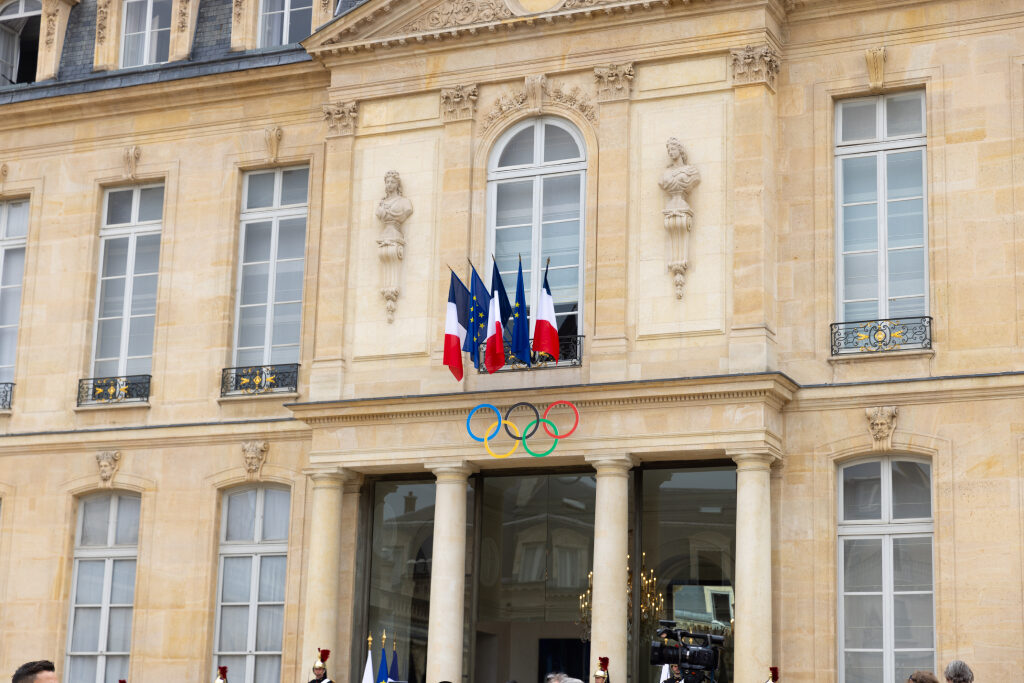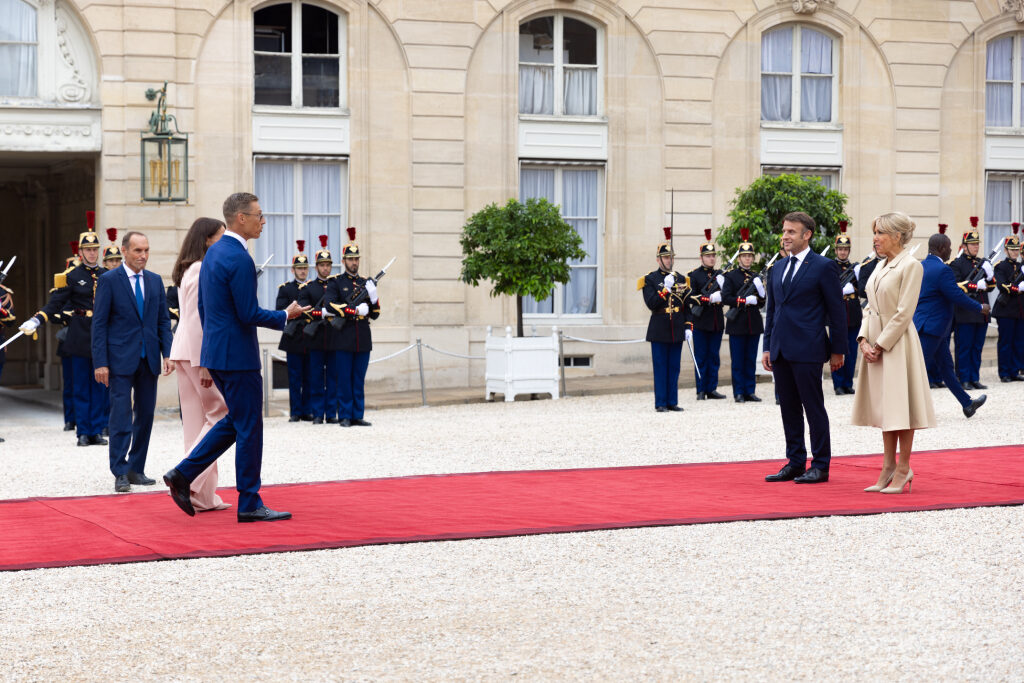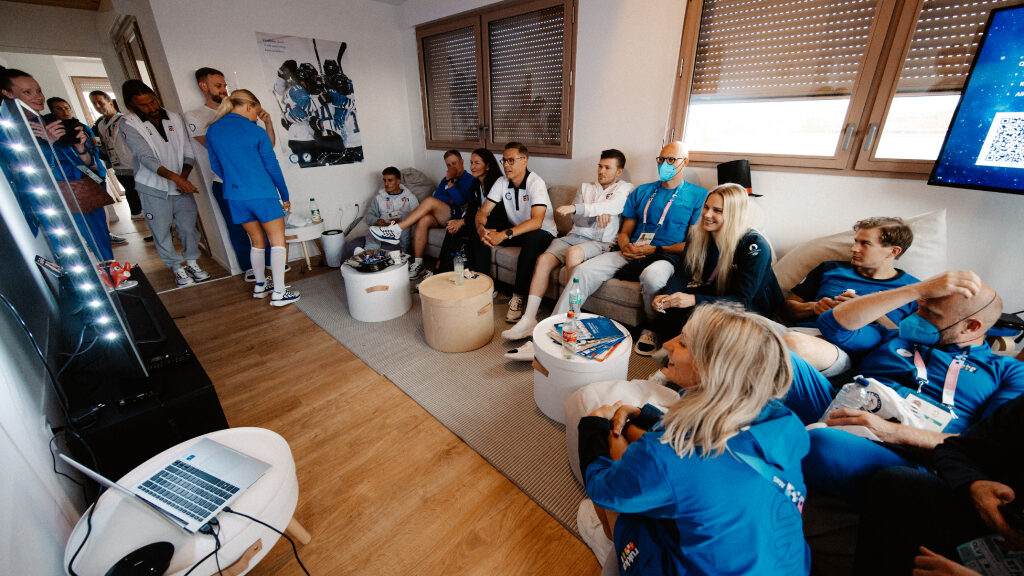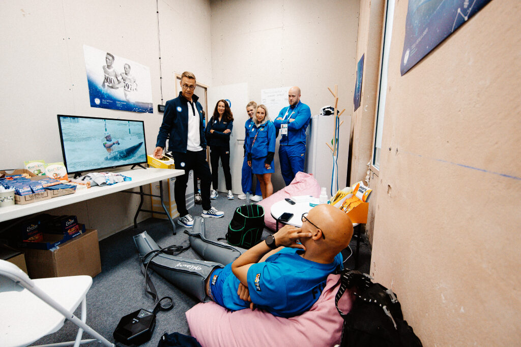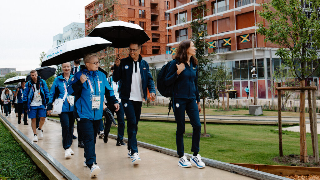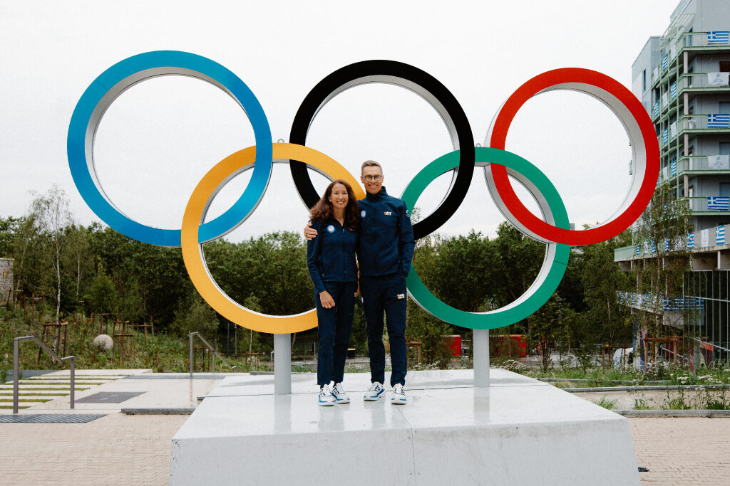 Presidentti Alexander Stubb ja puoliso Suzanne Innes-Stubb vierailevat olympialaisten kisakylässä tapaamassa suomalaisurheilijoita. Kuva: Jesse Väänänen