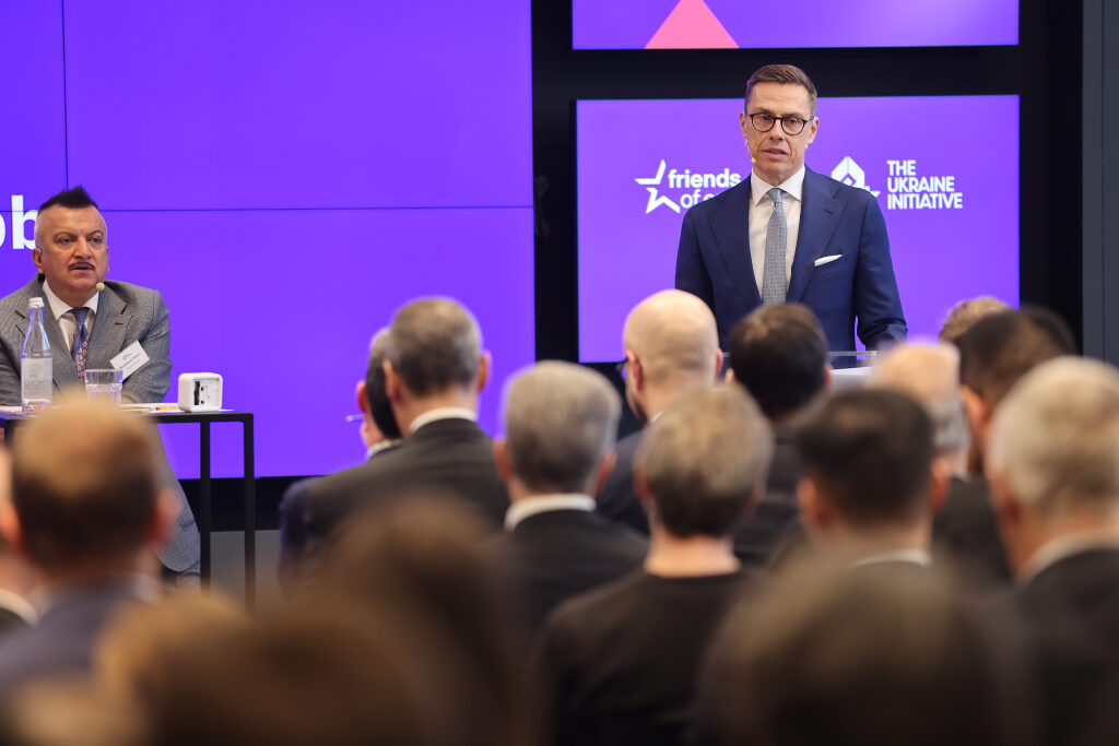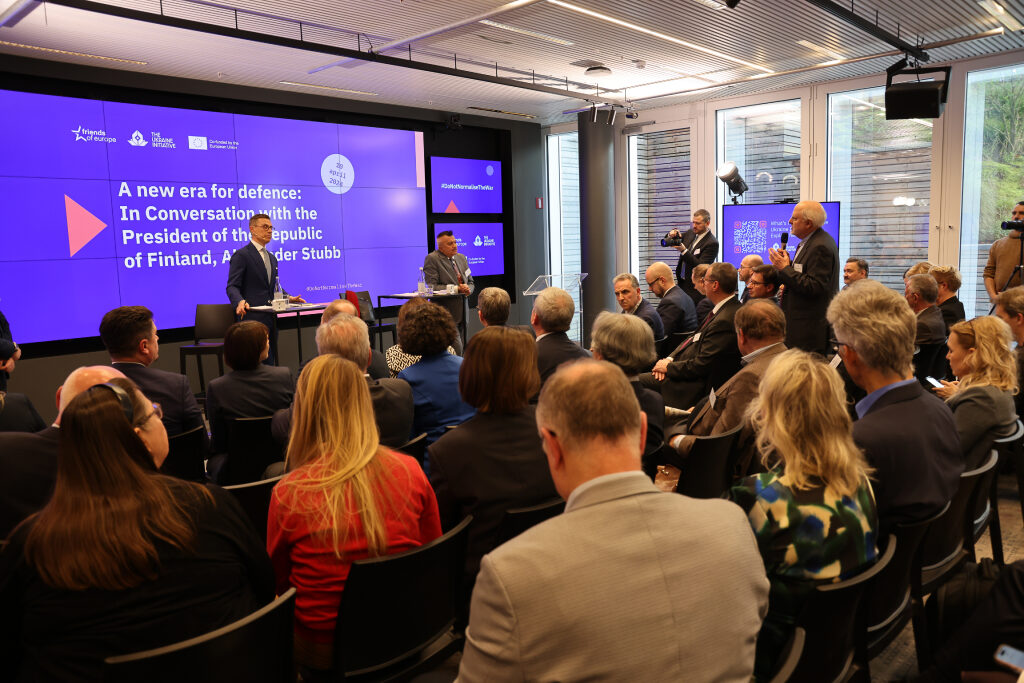 President Stubb gave a speech on the new era of defence at a conversation event held at the Friends of Europe think tank on 10 April 2024. Photo: Juhani Kandell/Office of the President of the Republic of Finland