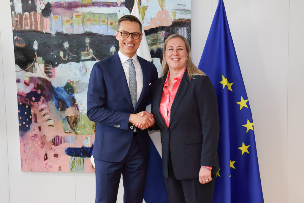 President Alexander Stubb met with European Commissioner for International Partnerships Jutta Urpilainen in Brussels on 10 April 2024. Photo: Juhani Kandell/Office of the President of the Republic of Finland