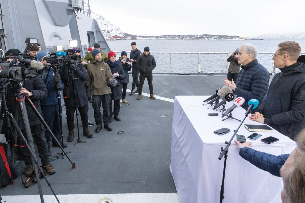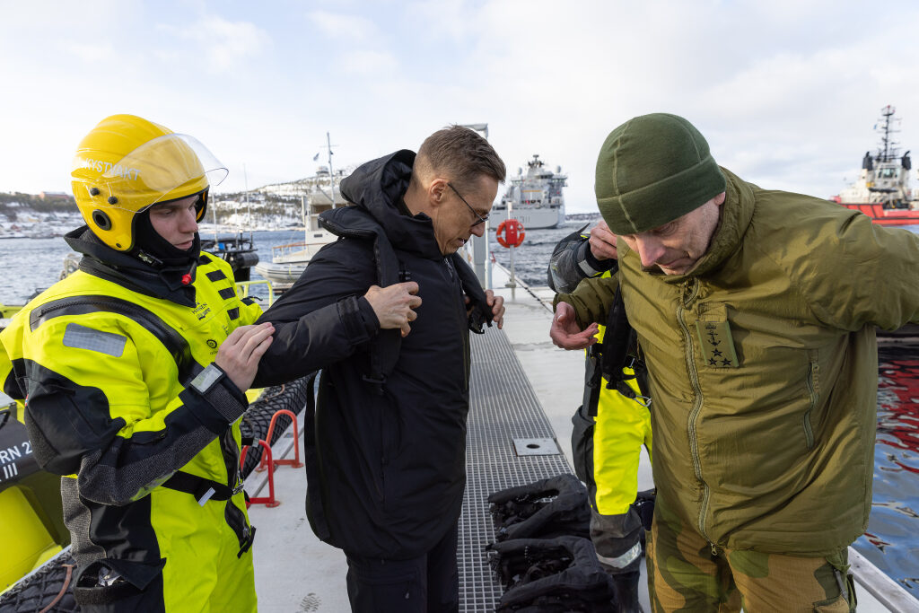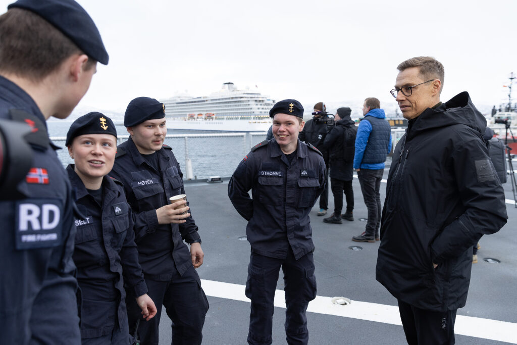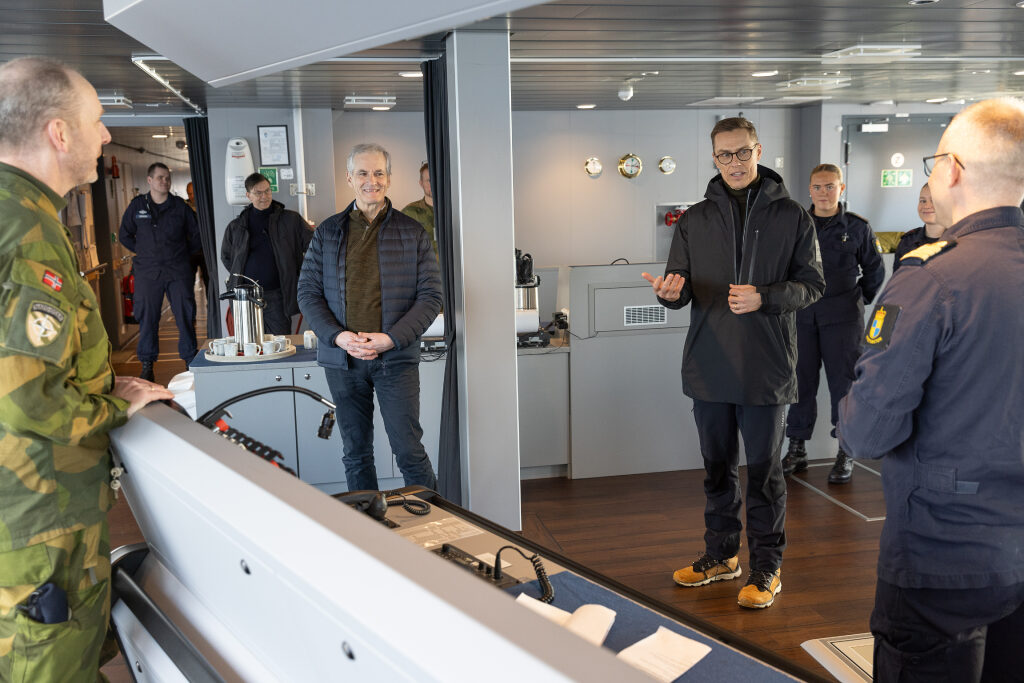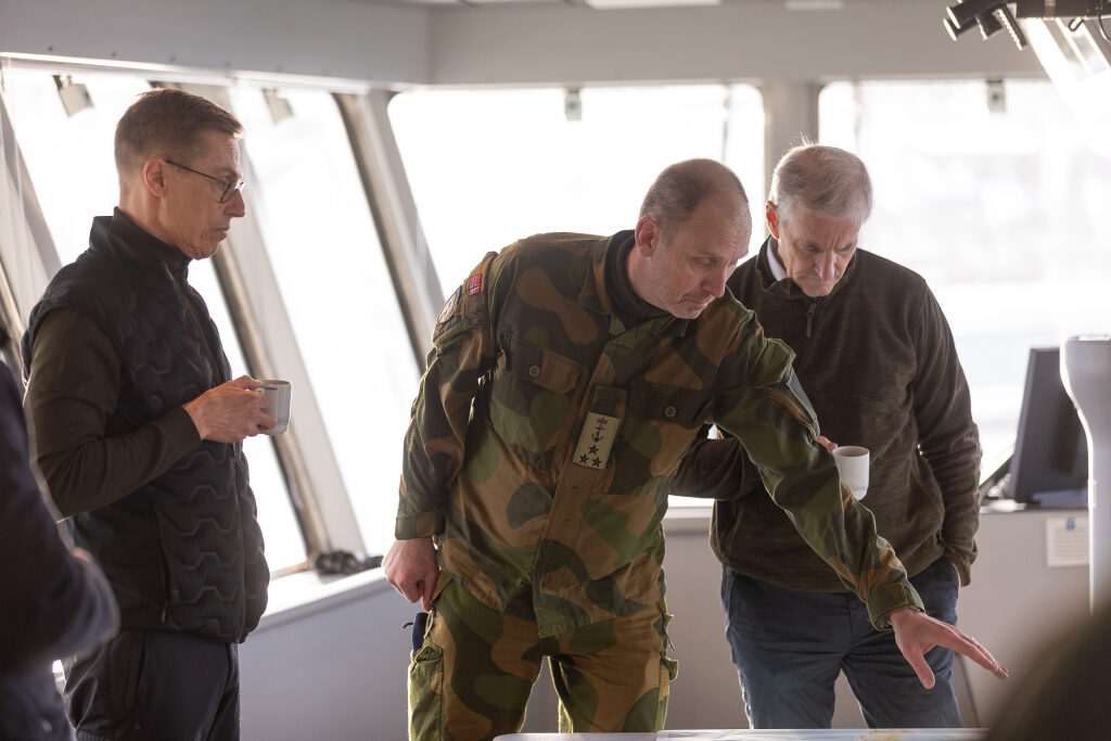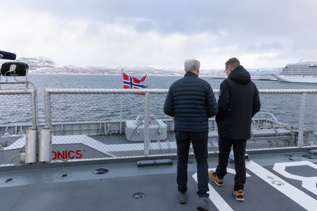 The programme continued with the President and the Prime Minister travelling by patrol boat from the port of Alta to the Norwegian Navy’s offshore patrol vessel KV Bjørnøya. On board the vessel, they held bilateral talks on the relations between Finland and Norway, Nordic defence cooperation, NATO cooperation and the importance of the Arctic region.