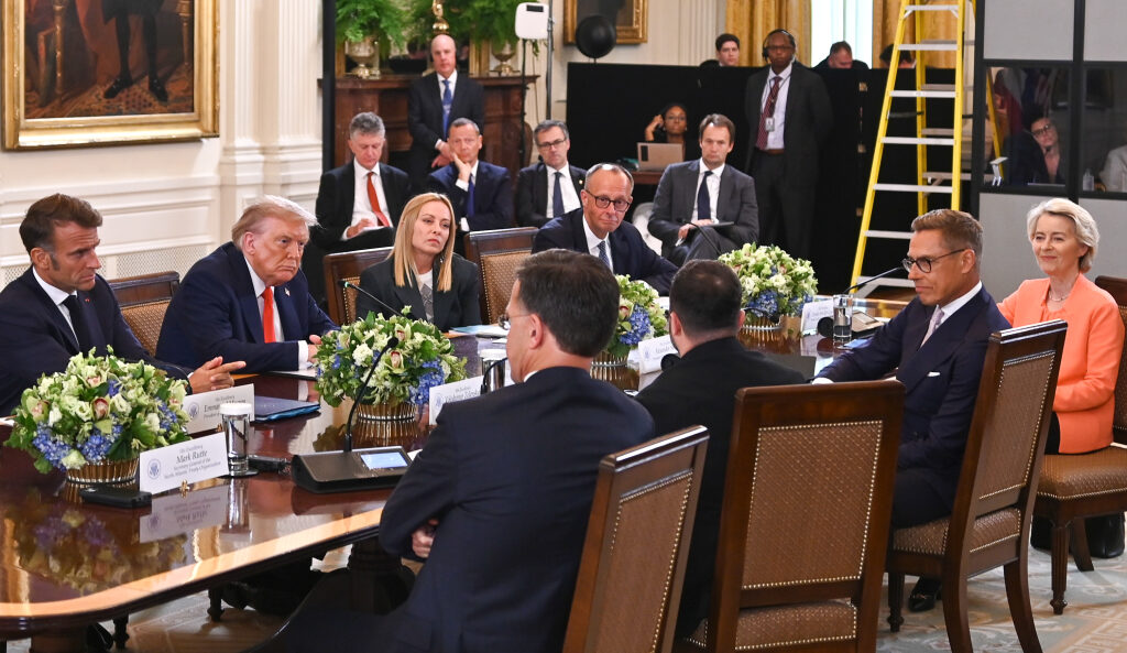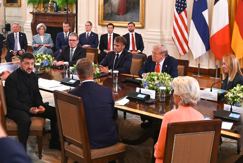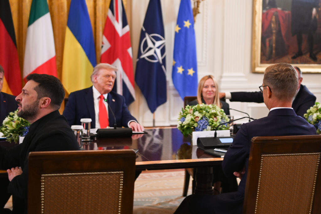 In addition to President Trump, President Zelenskyy, and President Stubb, the meeting at the White House was attended by French President Emmanuel Macron, British Prime Minister Keir Starmer, German Chancellor Friedrich Merz, Italian Prime Minister Giorgia Meloni, NATO Secretary General Mark Rutte, and European Commission President Ursula von der Leyen.
