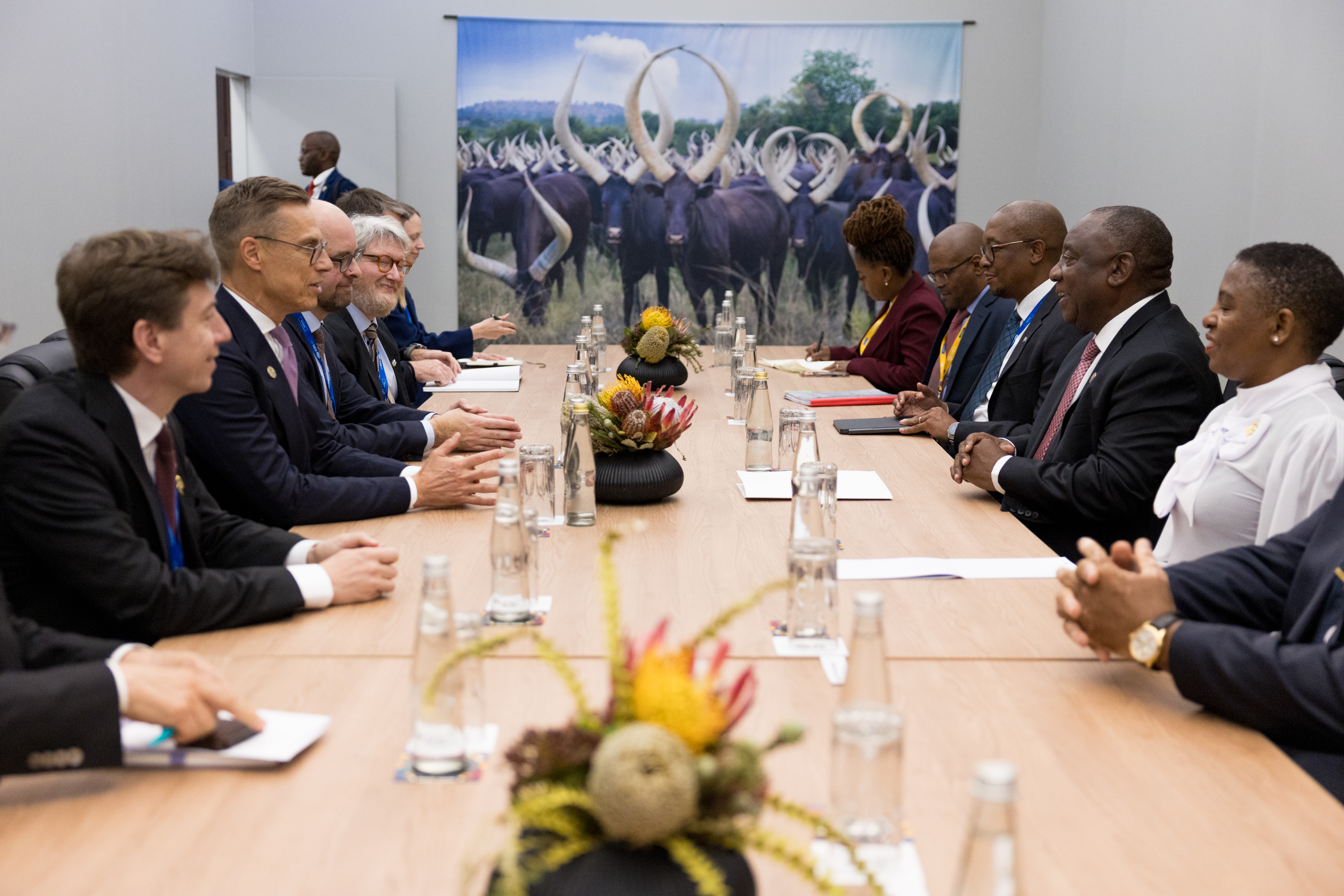 ”Etelä-Afrikka on keskeinen toimija kansainvälisellä areenalla ja vahva multilateralismin tukija”, totesi presidentti Stubb tapaamisen jälkeen.