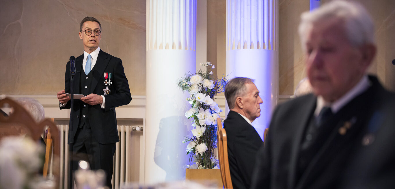 It is a great privilege for Suzanne and me to celebrate Finland’s independence with you – the men and women of the war generations – as our guests of honour at this reception. We look forward to engaging in discussions with you and hearing your experiences and thoughts about our beloved homeland. Thank you for visiting us here at the Presidential Palace. I wish you all the best for this festive occasion and for Independence Day. Thank you.