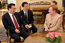 President of the Republic Tarja Halonen met with the Executive Vice Premier of China, Li Keqiang, on Friday 26 June, 2009 at the Presidential Palace. During their meeting, President Halonen and Vice Premier Li discussed bilateral relations between Finland and China, cooperation between the European Union and China, international economic crisis as well as the preparations of the World Expo in Shanghai.
