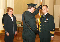 Tasavallan presidentti Tarja Halonen luovutti siunatun lipun Länsi-Suomen merivartiostolle Presidentinlinnassa 10.6.2005. Lipun siunasi kenttäpiispa Hannu Niskanen, ja presidentti Halonen luovutti sen Länsi-Suomen merivartioston komentajalle, kommodori Henrik Wärnhjelmille. Alkusoitto