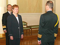 Lippulaulun päätyttyä presidentti Halonen poistui salista vara-amiraali Smolanderin ja kenttäpiispa Niskasen kanssa samalla, kun soittokunta soitti Porilaisten marssin alkuosaa. Lopuksi presidentti Halonen allekirjoitti lippukirjan Keltaisessa salissa.