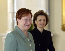 President of the Republic Tarja Halonen met Speaker of the Eduskunta (Parliament) Anneli Jäätteenmäki at the Presidential Palace on Tuesday 15.4.2003. At the meeting, the Speaker reported on the outcome of negotiations to form a government coalition. Having heard the Speaker, the President gave the Eduskunta written notification of the nominee for the post of Prime Minister.