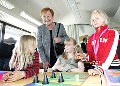 President Halonen besökte Havs-Rastböles skola, där hon träffade Veera (till vänster), Jenna och Janika. Foto: Lehtikuva