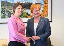 Republikens president Tarja Halonen träffade Nya Zeelands premiärminister Helen Clark i Wellington tisdagen den 20 februari 2007. Vid diskussionerna i parlamentshuset behandlades bl.a. klimatförändringen, och för hejdandet av den önskade president Halonen och premiärminister Clark ytterligare forskning kring förnybara energikällor. I diskussionerna behandlades även den civila krishanteringen samt utvecklingen i Asien och södra Stillahavsområdet. I sitt lunchtal på parlamentet betonade president Halonen likheterna mellan Finland och Nya Zeeland. Nya Zeeland var det första landet i världen som gav kvinnorna rösträtt. Finland var det andra landet i världen som tog detta steg, framhöll president Halonen. Demokrati, respekt för de mänskliga rättigheterna - inklusive minoriteternas rättigheter - och rättsstatsprincipen utgör en självklar grund i de båda länderna.