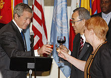 In connection with the Opening of the General Assembly, President Halonen attended a reception hosted by President of the United States George W. Bush and took part in the Clinton Global Initiative event arranged by former President Bill Clinton. President Halonen's programme during the week also included bilateral meetings, including one with UN Secretary-General Ban Ki-Moon.