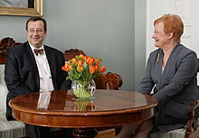 President of Estonia Toomas Hendrik Ilves was on a state visit to Finland together with his spouse Mrs. Evelin Ilves on 14 – 16 March 2007. President Ilves and his delegation arrived on board the Estonian Navy Ship Admiral Pitka at the South Harbour in Helsinki, after which the official reception ceremonies and discussions with President of the Republic of Finland Tarja Halonen took place at the Presidential Palace. Among the topics for discussion in the talks between the two Presidents were bilateral Finnish-Estonian affairs. The relations between Finland and Estonia are close and the two countries are important trading partners to each other. Also the issues of energy availability, protection of the Baltic Sea and the EU Rapid Reaction Forces were discussed. The two Presidents noted that the co-operation in EU affairs between Finland and Estonia is excellent. Finland particularly values Estonia’s support and interest in the Northern Dimension.