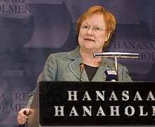 Tasavallan presidentti Tarja Halosen mielestä naiset tulee saada mukaan rauhanrakentamiseen ja rauhanneuvotteluihin kaikilla tasoilla. ”Naisten ruohonjuuritason aktivismi luo pohjaa kestäville ratkaisuille. Siksi on tärkeää tukea projekteja, joilla vahvistetaan naisten rauhantyötä sekä luodaan edellytyksiä paikalliselle toiminnalle”, presidentti Halonen sanoi perjantaina 2. maaliskuuta Espoon Hanasaaressa järjestetyssä Hanaforum-seminaarissa, jonka aiheena oli YK:n uudistusprosessi. Presidentti Halonen kertoi olleensa itse tukemassa mm. YK:n naisten järjestön UNIFEMin aloitetta dialogin rakentamiseksi israelilaisten ja palestiinalaisten naisten välille.