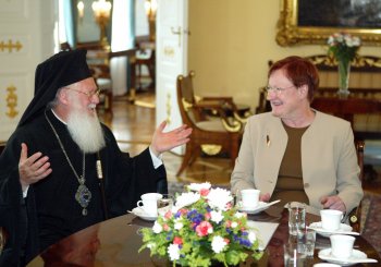 Tasavallan presidentti Tarja Halonen tapasi perjantaina 6. kesäkuuta 2003 Suomessa vierailevan Konstantinopolin ekumeenisen patriarkan Bartolomeoksen.