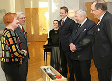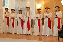 Lucia-neito Karolina Henriksson ja kuoro Minna Vihavainen, Maria Mehlem, Hilkka Waltari, Isabella Karlberg, Götilda Lindroos ja Emma Ekstrand esittivät tervehdyksensä presidentti Tarja Haloselle ja tohtori Pentti Arajärvelle.