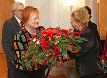 Tasavallan presidentti Tarja Halonen vastaanotti perinteiset joulutervehdykset virka-asunnollaan Mäntyniemessä 19.12.2006.