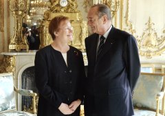 President of the Republic Tarja Halonen and Dr Pentti Arajärvi made an official visit to France from 28 February to 3 March 2005. During the visit President Halonen met President Jacques Chirac and President of the Senate Christian Poncelet in Paris. She also gave a lecture at the French Institute of International Relations (IFRI).