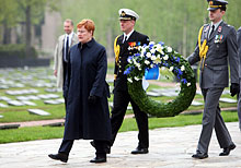 Tasavallan presidentti Tarja Halonen on laskenut seppeleen Helsingin