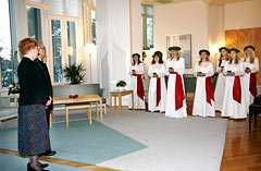 Tasavallan presidentti Tarja Halonen vastaanotti perinteiset joulutervehdykset virka-asunnollaan Mäntyniemessä 20.12.2005. Presidentti Halonen sai metsäylioppilailta joulukuusen, Maataloustuottajain Vehmaan yhdistykseltä joulukinkun ja Korppoon kunnan edustajilta joulukalan. Lucia-neito kävi myös kuoronsa kanssa esittämässä oman tervehdyksensä.