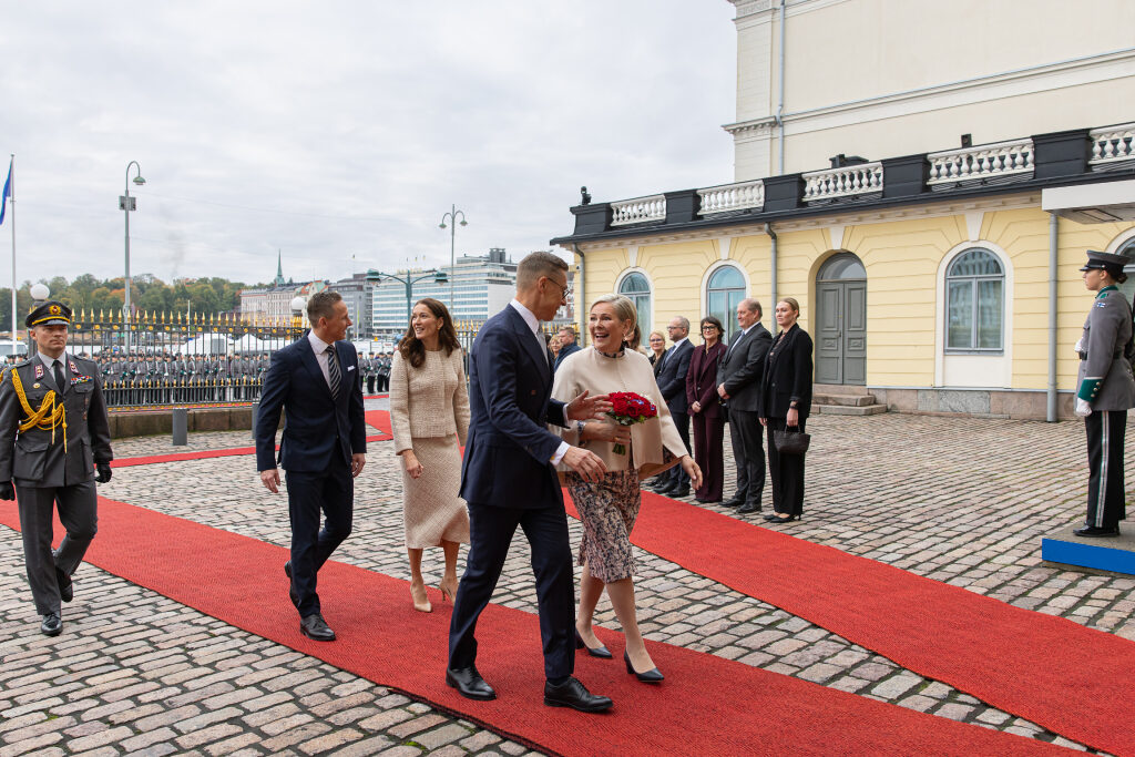 Tasavallan presidentti Alexander Stubb vastaanotti Islannin presidenttiparin valtiovierailuun kuuluvin seremonioin tiistaina 7. lokakuuta Presidentinlinnan edustalla. Linnan pihalla kuultiin Suomen ja Islannin kansallishymnit, minkä jälkeen presidentti Stubb ja Islannin presidentti Halla Tómasdóttir tarkastivat kunniakomppanian. Tarkastuksen jälkeen presidentit tervehtivät kummankin maan delegaatioiden jäseniä.