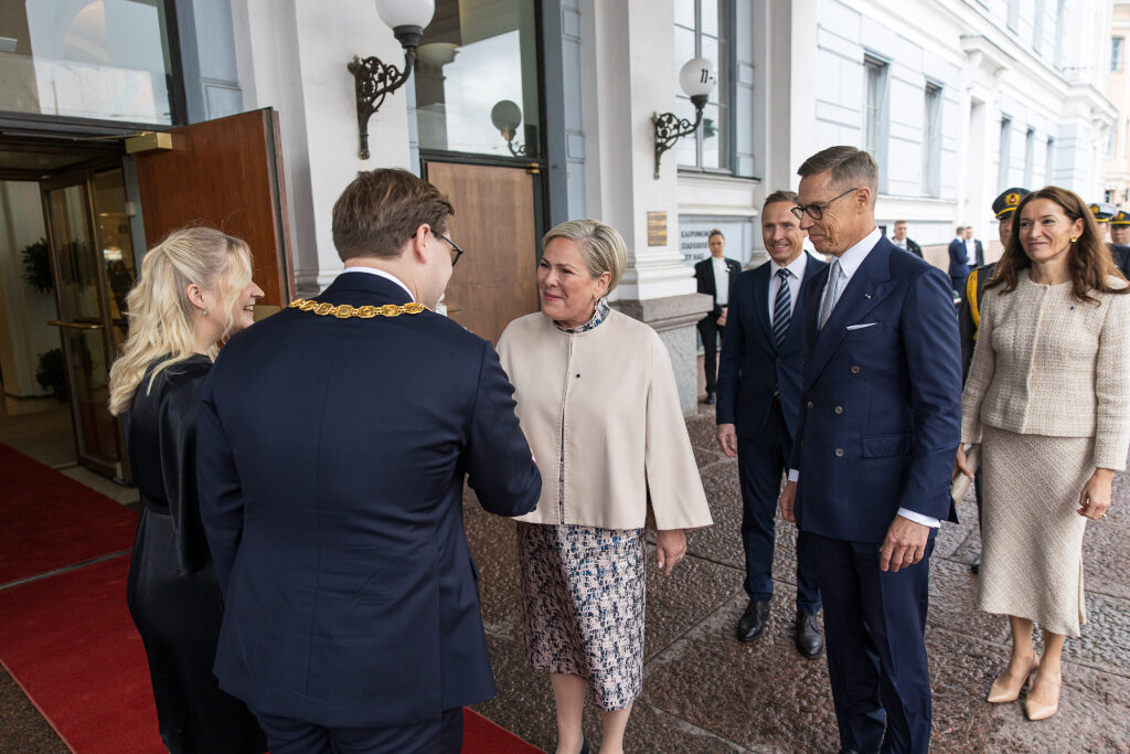 Islannin presidentti Halla Tómasdóttir ja tasavallan presidentti Alexander Stubb yhteisessä lehdistötilaisuudessa Presidentinlinnassa. Kuva: Matti Porre/Tasavallan presidentin kansliaPresidenttiparit valmiina vastaanottamaan vieraat Islannin valtiovierailun kunniaksi järjestetylle juhlapäivälliselle Presidentinlinnassa 7. lokakuuta 2025. Kuva: Emmi Syrjäniemi / Tasavallan presidentin kansliaIslannin valtiovierailun juhlapäivällinen Presidentinlinnassa 7. lokakuuta 2025. Kuva: Emmi Syrjäniemi / Tasavallan presidentin kanslia