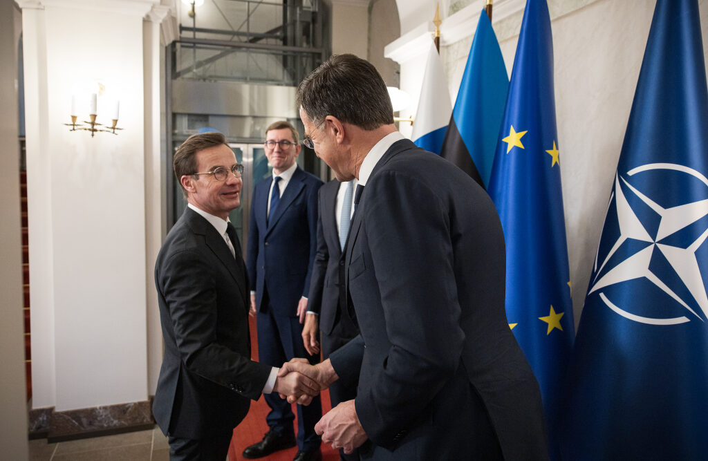 Tasavallan presidentti Alexander Stubbin, Naton pääsihteeri Mark Rutten ja Viron pääministeri Kristen Michalin yhteinen lehdistötilaisuus