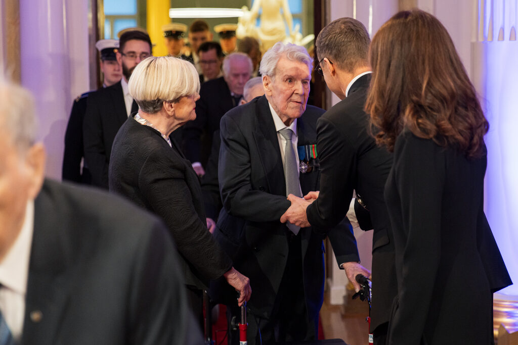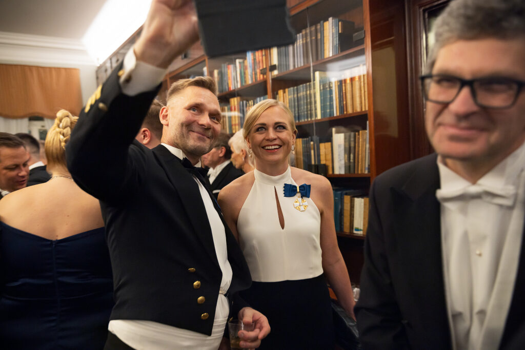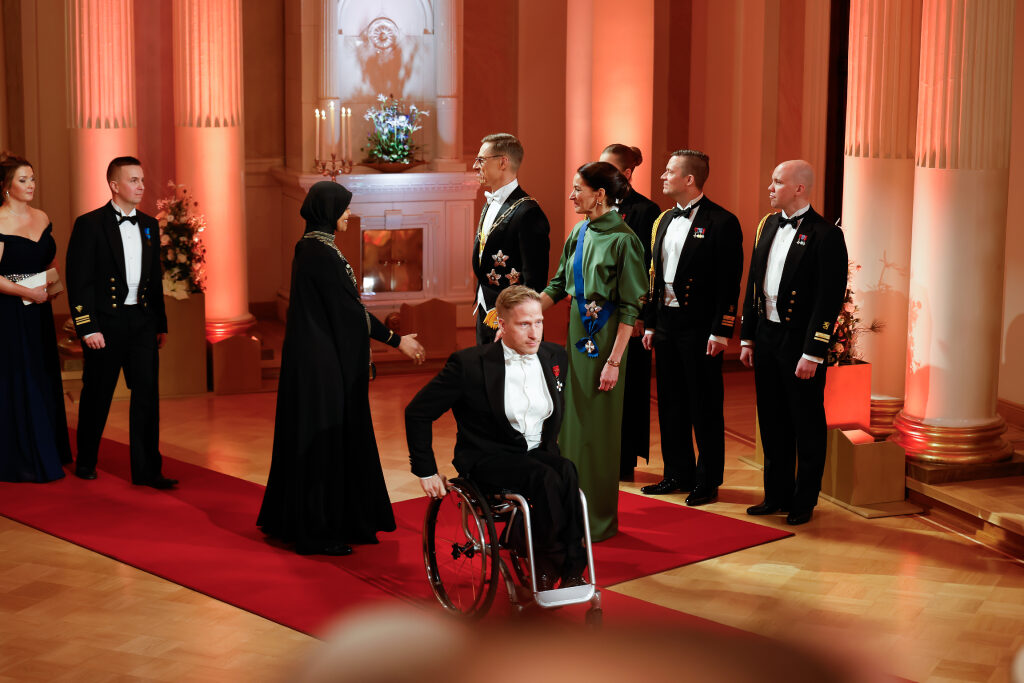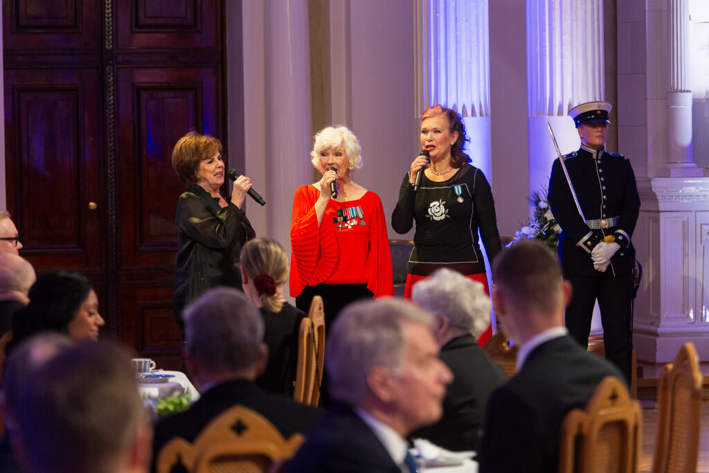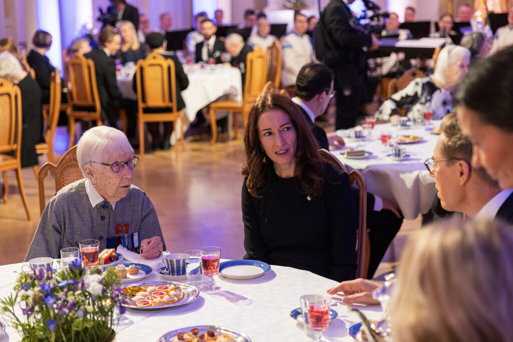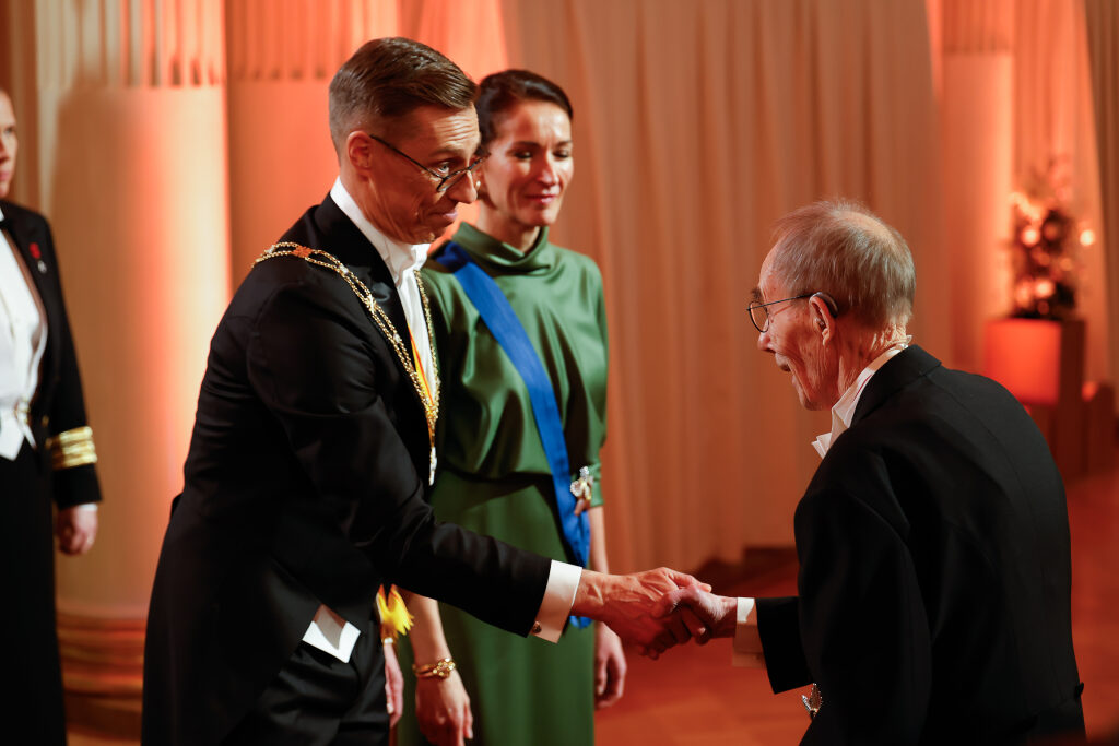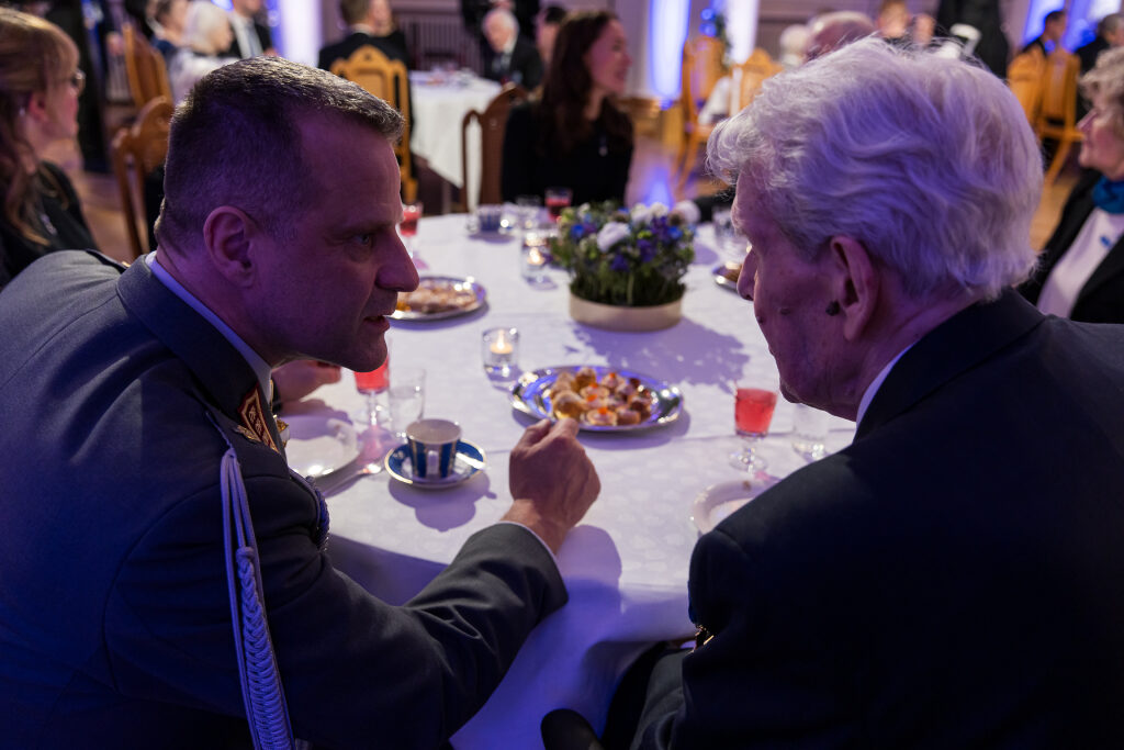 Tasavallan presidentti Alexander Stubb kutsui puolisonsa Suzanne Innes-Stubbin kanssa Sotiemme veteraaneja ja lottia juhlatilaisuuteen Presidentinlinnaan alkuviikosta maanantaina 2. joulukuuta.
