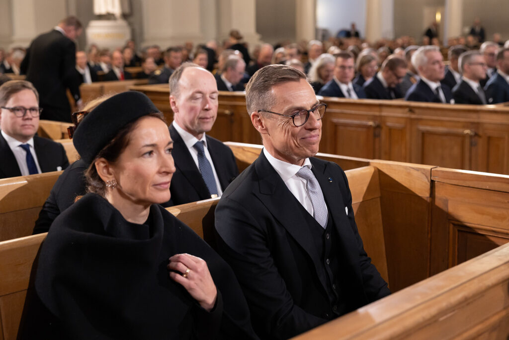 Presidenttiparin itsenäisyyspäivän aamu käynnistyi perinteisesti Hietaniemen hautausmaalta, jossa presidentti Alexander Stubb laski seppeleen sankariristille. Päivä jatkui Suomen itsenäisyyden ekumeenisella juhlajumalanpalveluksella Tuomiokirkossa.