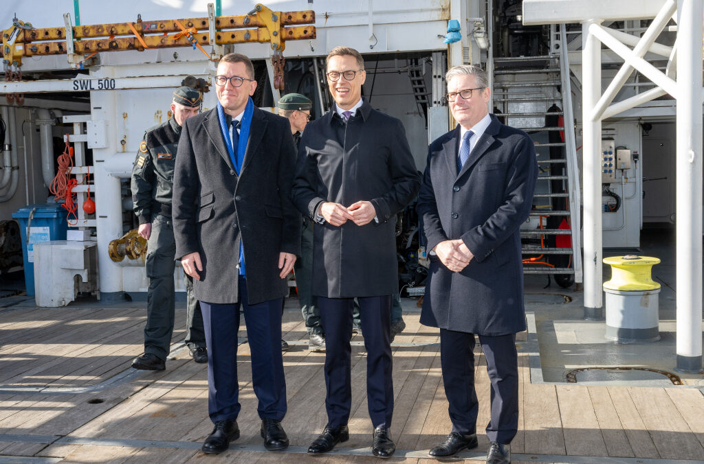 JEF Leaders' Summit 2026 – Helsinki JEF country leaders visited vessel Turva of The Finnish Coastguard in Helsinki harbour. Prime ministers and Finlands President Alexander Stubb followed a demonstrated action of a helicopter occupying a hostile vessel.