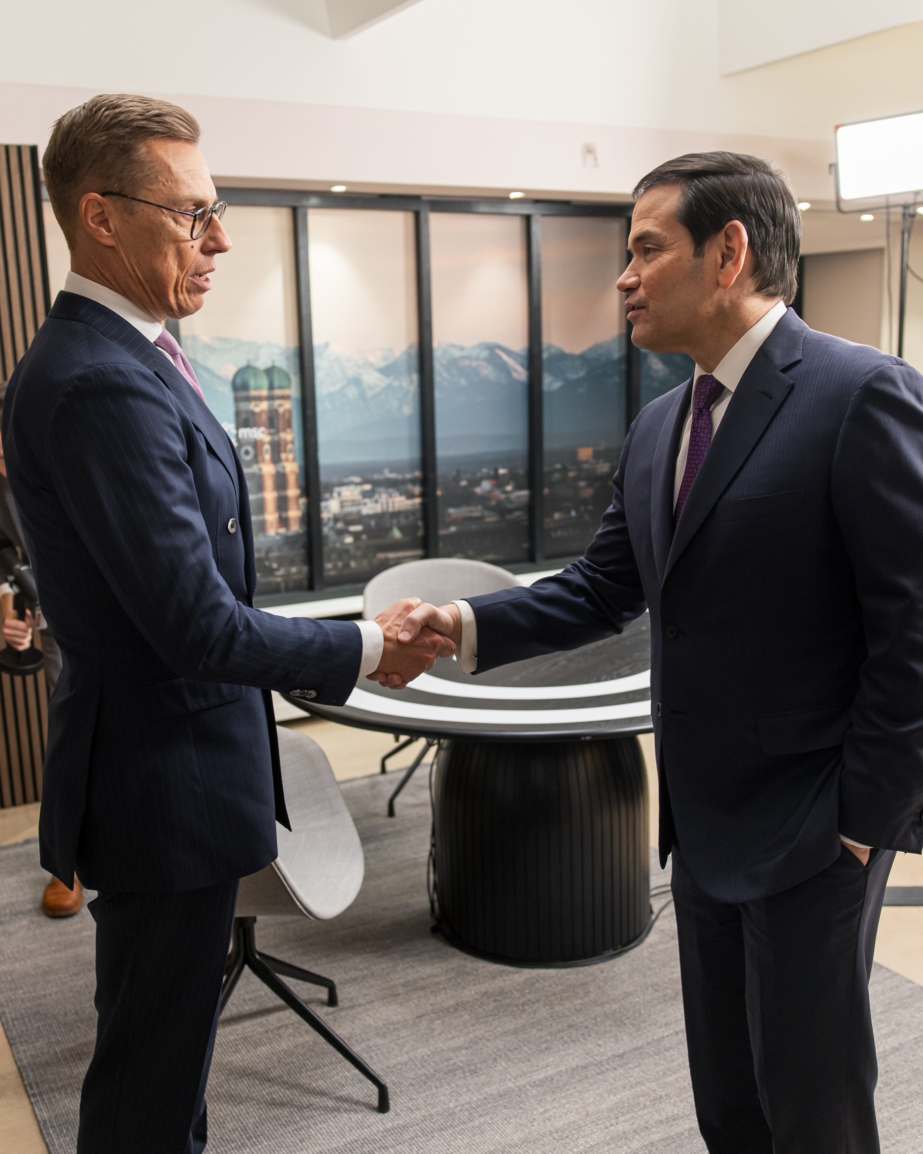 Presidentti Stubb ja Yhdysvaltain ulkoministeri Marco Rubio Münchenin turvallsuuskonferenssissa 14. helmikuuta 2026. Kuva: Matti Porre/Tasavallan presidentin kanslia