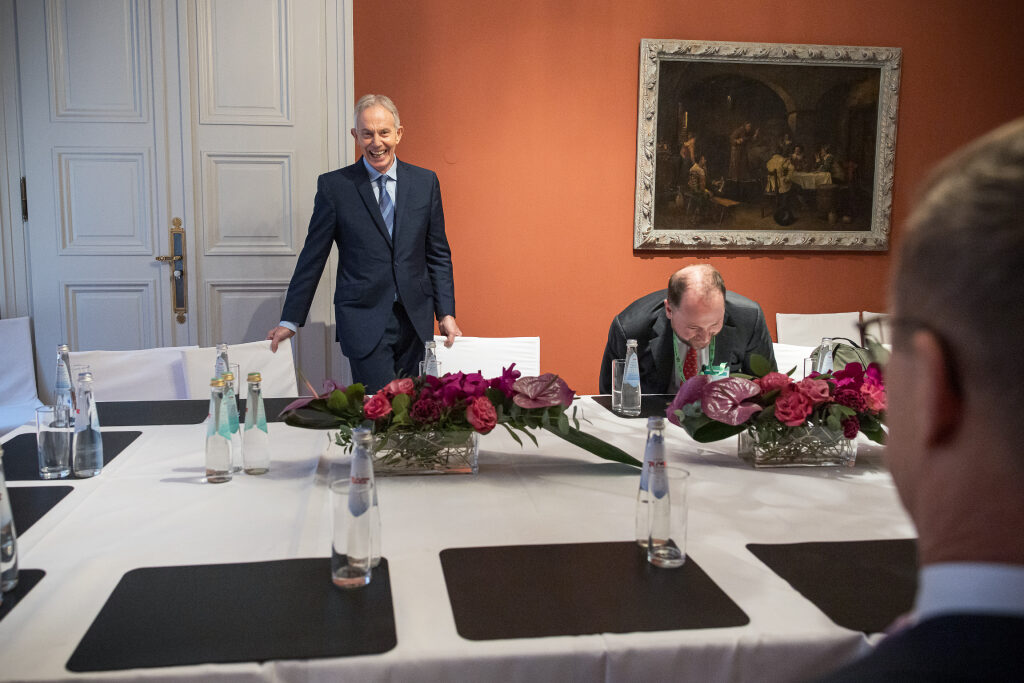 Presidentti Stubb tapasi Ison-Britannian entisen pääministerin Tony Blairin Münchenin turvallisuuskonferenssissa 14. helmikuuta 2026. Kuva: Matti Porre/Tasavallan presidentin kanslia