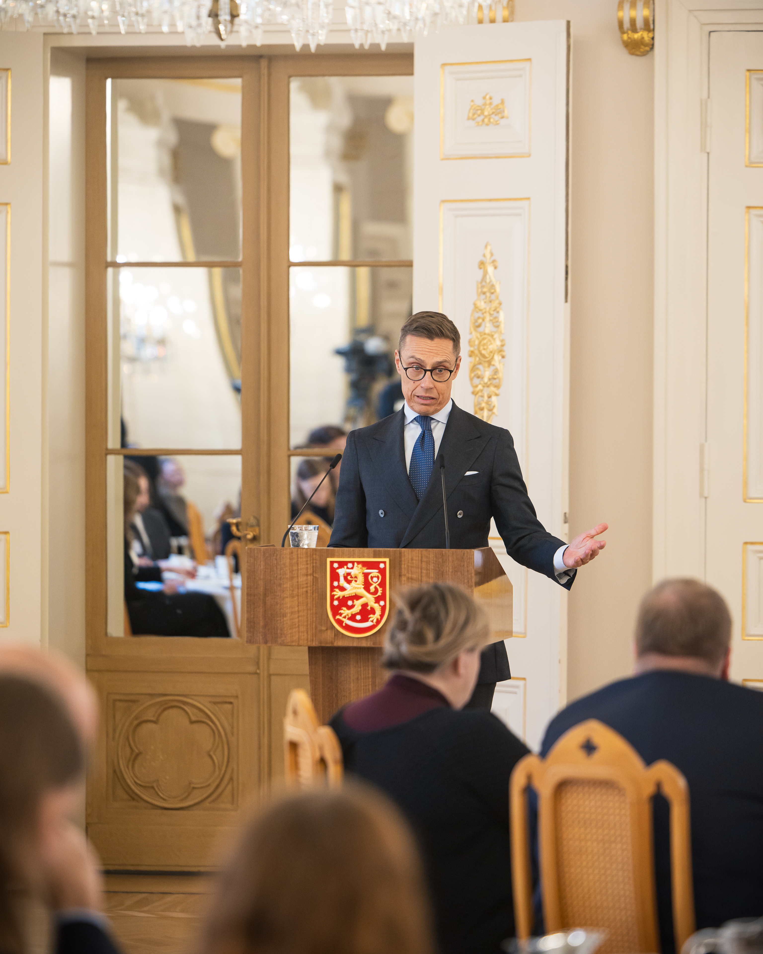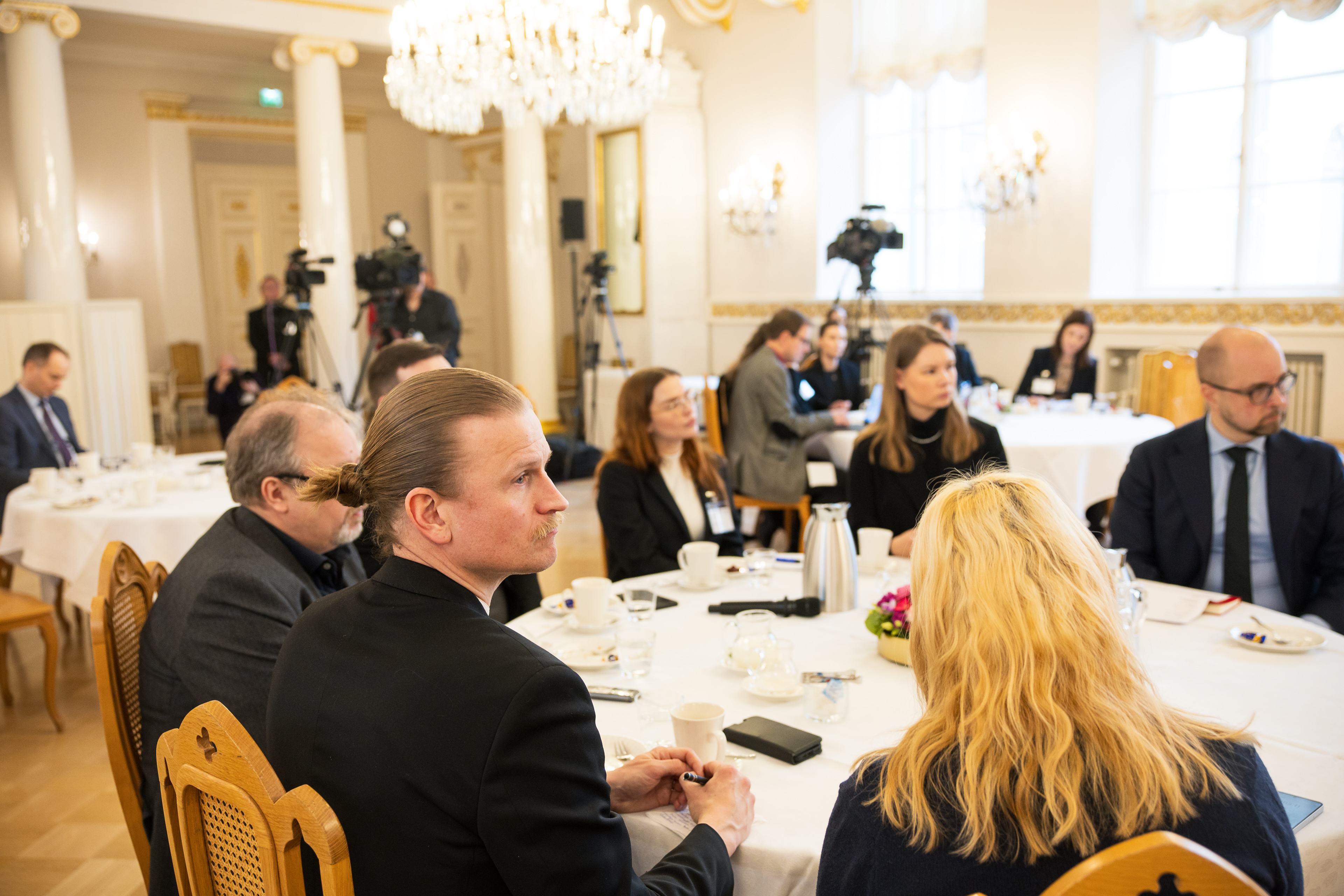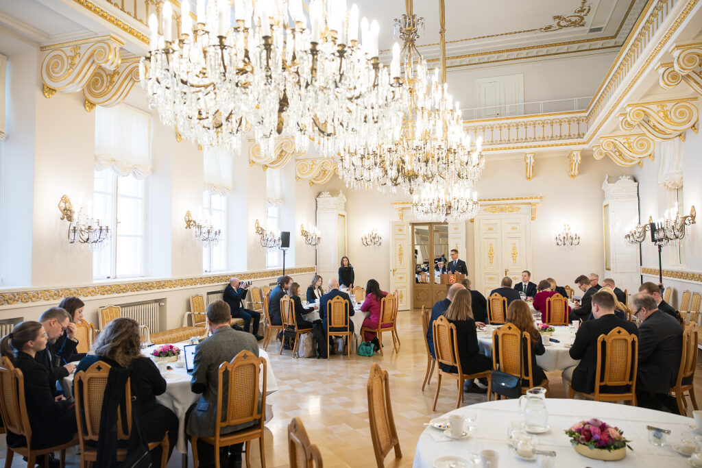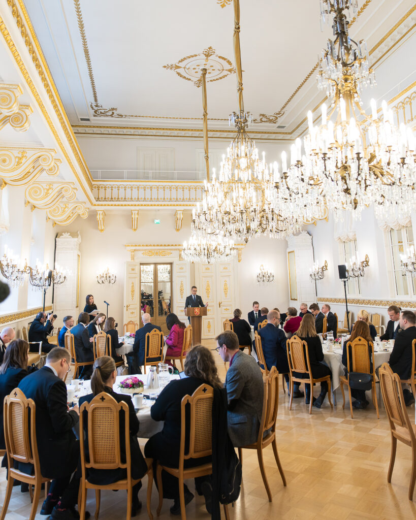 Tasavallan presidentti Alexander Stubb tapasi Politiikan toimittajat ry:n jäseniä Presidentinlinnassa tiistaina 10. helmikuuta 2026. Kuva: Matti Porre/Tasavallan presidentin kanslia