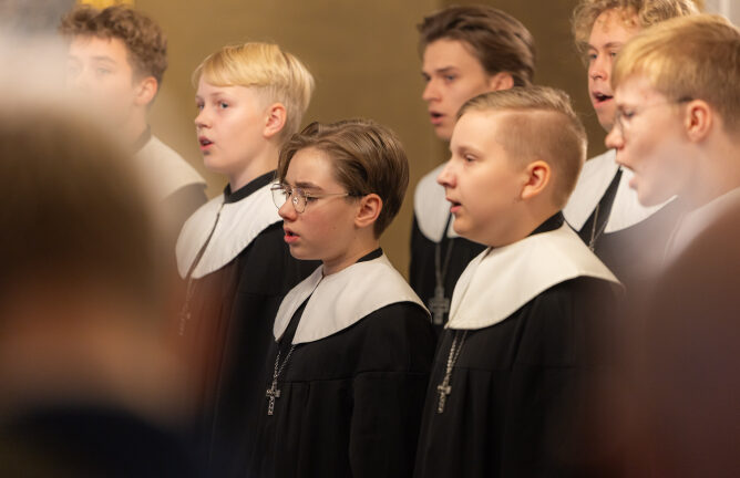 Lasten Lucia-kuoro Kaunialan sairaalan joulujuhlassa. Kuva: Emmi Syrjäniemi / Tasavallan presidentin kanslia