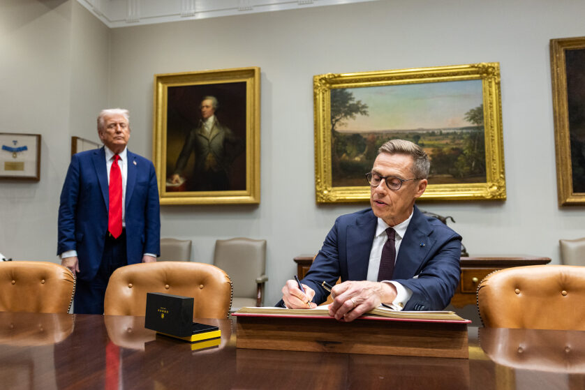 Presidentti Stubb ja presidentti Trump allekirjoittivat Suomen ja Yhdysvaltojen välisen yhteisymmärryspöytäkirjan jäänmurtajayhteistyöstä. Kuva: Matti Porre/Tasavallan presidentin kanslia