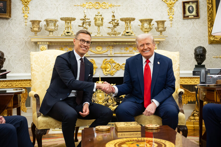 Presidentit kättelevät keskustelujen aluksi Oval Officessa. Kuva: Matti Porre/Tasavallan presidentin kanslia