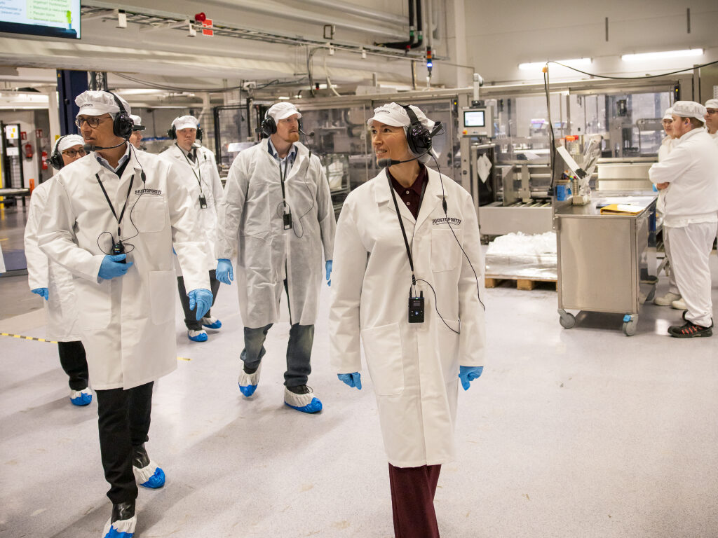 Presidenttiparin vierailu alkoi Kurikan Jalasjärveltä, missä he tutustuivat Juustoportin meijeriin. Kuva: Matti Porre/Tasavallan presidentin kanslia