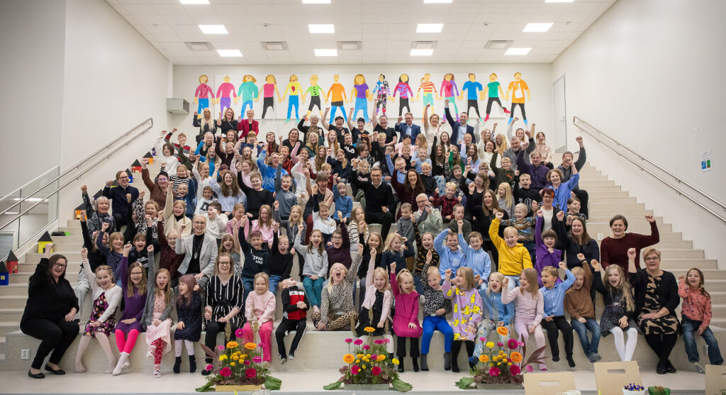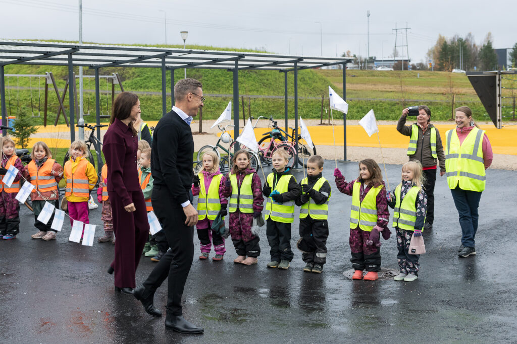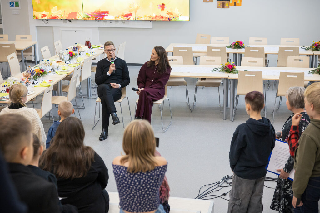 Tuiskulan alakoulussa Kurikassa presidenttipari oli oppilaiden haastateltavana. Kuva: Matti Porre/Tasavallan presidentin kanslia