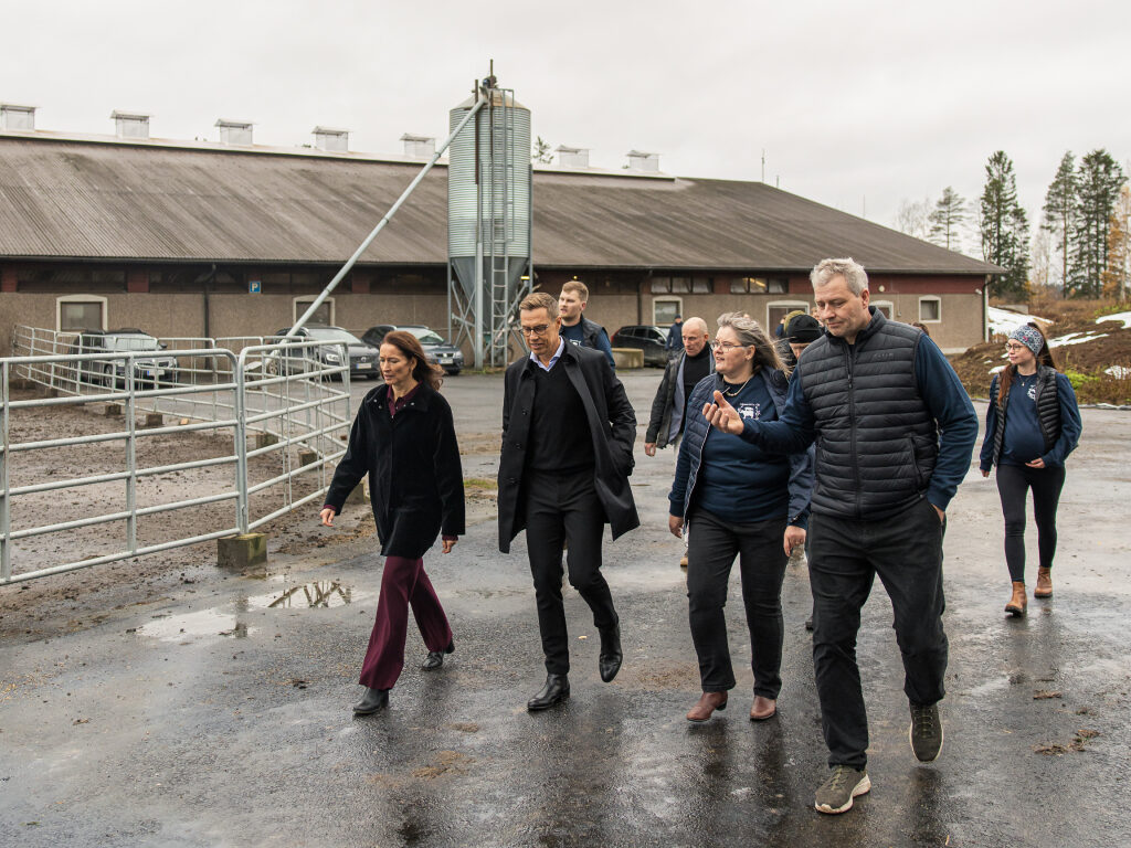 Ala-Marttilan maatilalla Kurikassa presidenttipari tutustui lypsykarjanavettaan ja tilan biokaasulaitokseen. Kuva: Matti Porre/Tasavallan presidentin kanslia