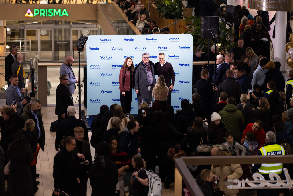 Tasavallan presidentti Alexander Stubb ja hänen puolisonsa Suzanne Innes-Stubb yleisötilaisuudessa kauppakeskus Jumbossa Vantaalla 3. helmikuuta 2026. Kuva: Emmi Syrjäniemi / Tasavallan presidentin kanslia