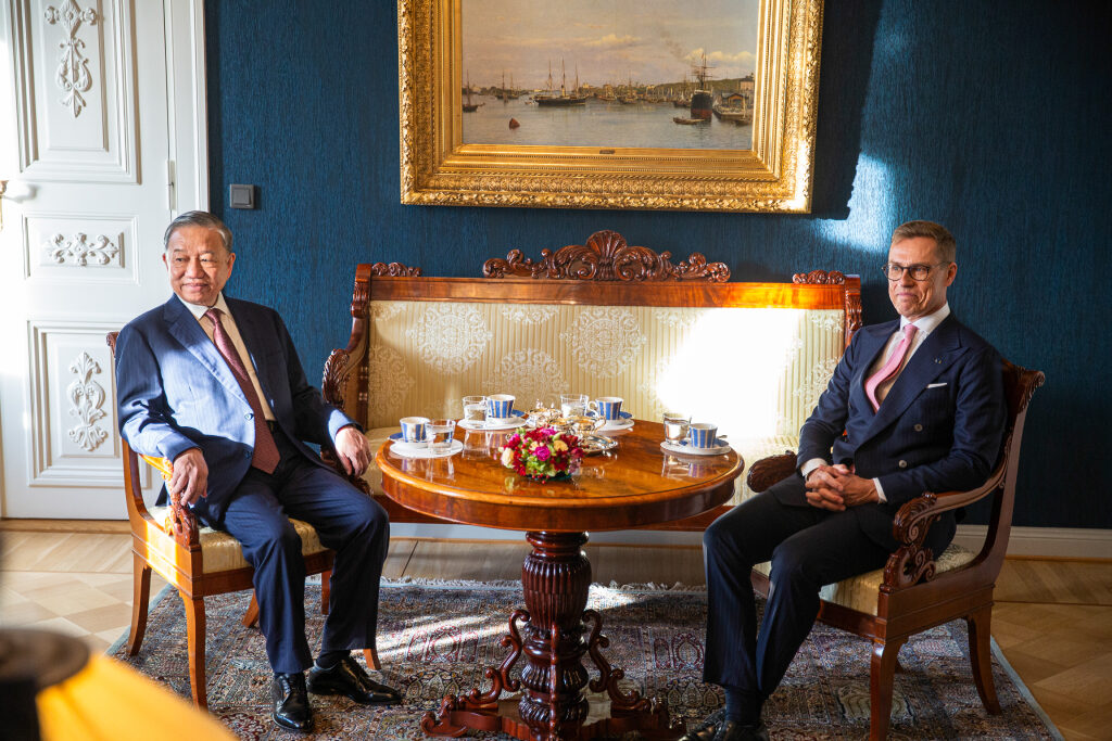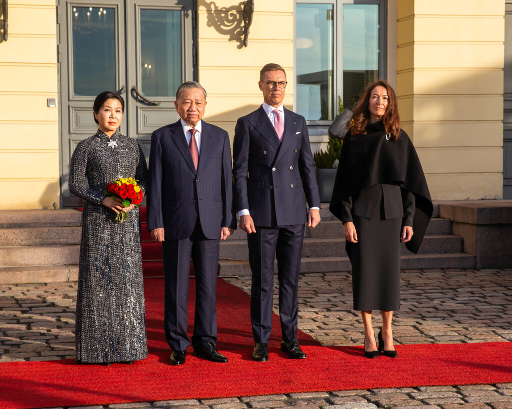 Vietnamin kommunistisen puolueen pääsihteeri Tô Lâm teki yhdessä puolisonsa Ngô Phương Lyn kanssa virallisen vierailun Suomeen 21.–22. lokakuuta 2025. Vierailua isännöi tasavallan presidentti Alexander Stubb puolisonsa Suzanne Innes-Stubbin kanssa. Kuva: Matti Porre/Tasavallan presidentin kanslia