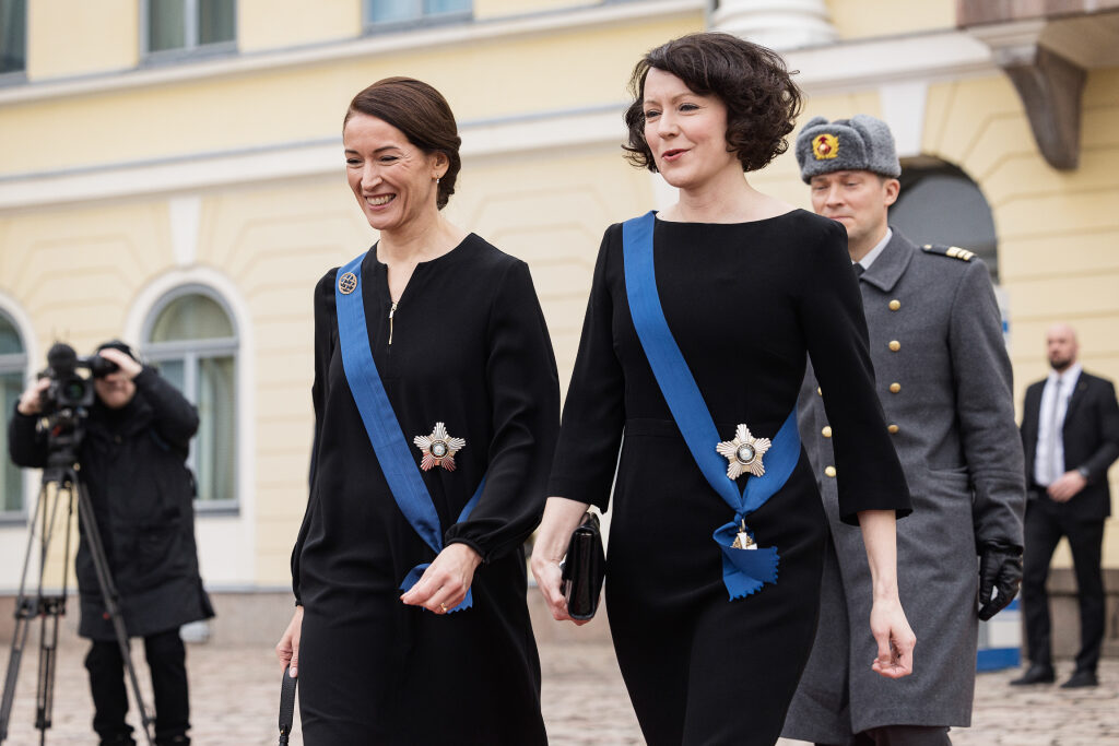 Tasavallan presidentin puoliso Jenni Haukio ja tulevan presidentin puoliso Suzanne Innes-Stubb lähdössä eduskuntaan. Kuva: Roni Rekomaa/Tasavallan presidentin kanslia