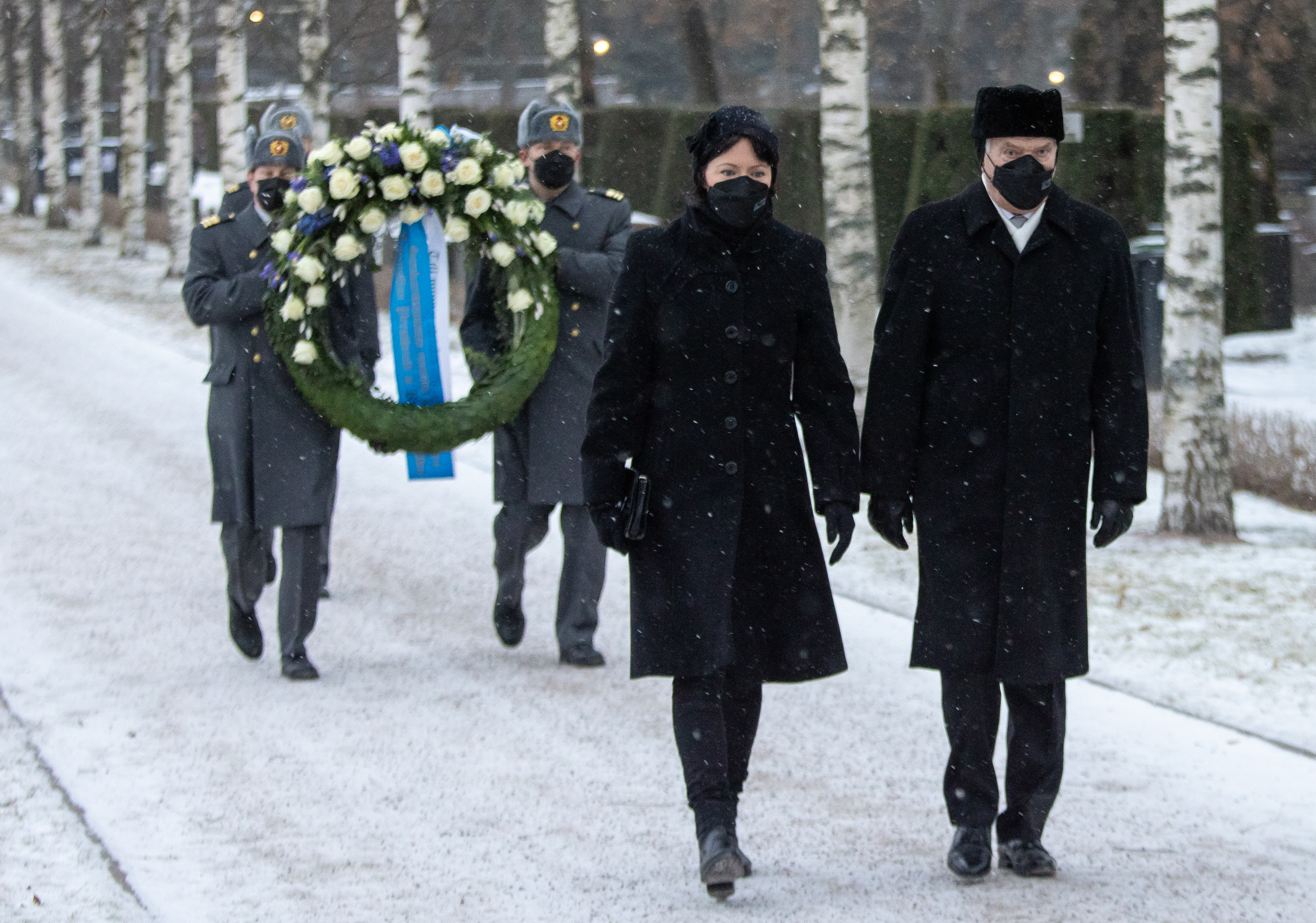 The Presidential couple’s Independence Day began on Monday with the laying of a wreath at the Hero’s Cross in Hietaniemi Cemetery, in memory of war heroes. From Hietaniemi, the presidential couple proceeded to Helsinki Cathedral, where they lit candles for Finland’s independence.