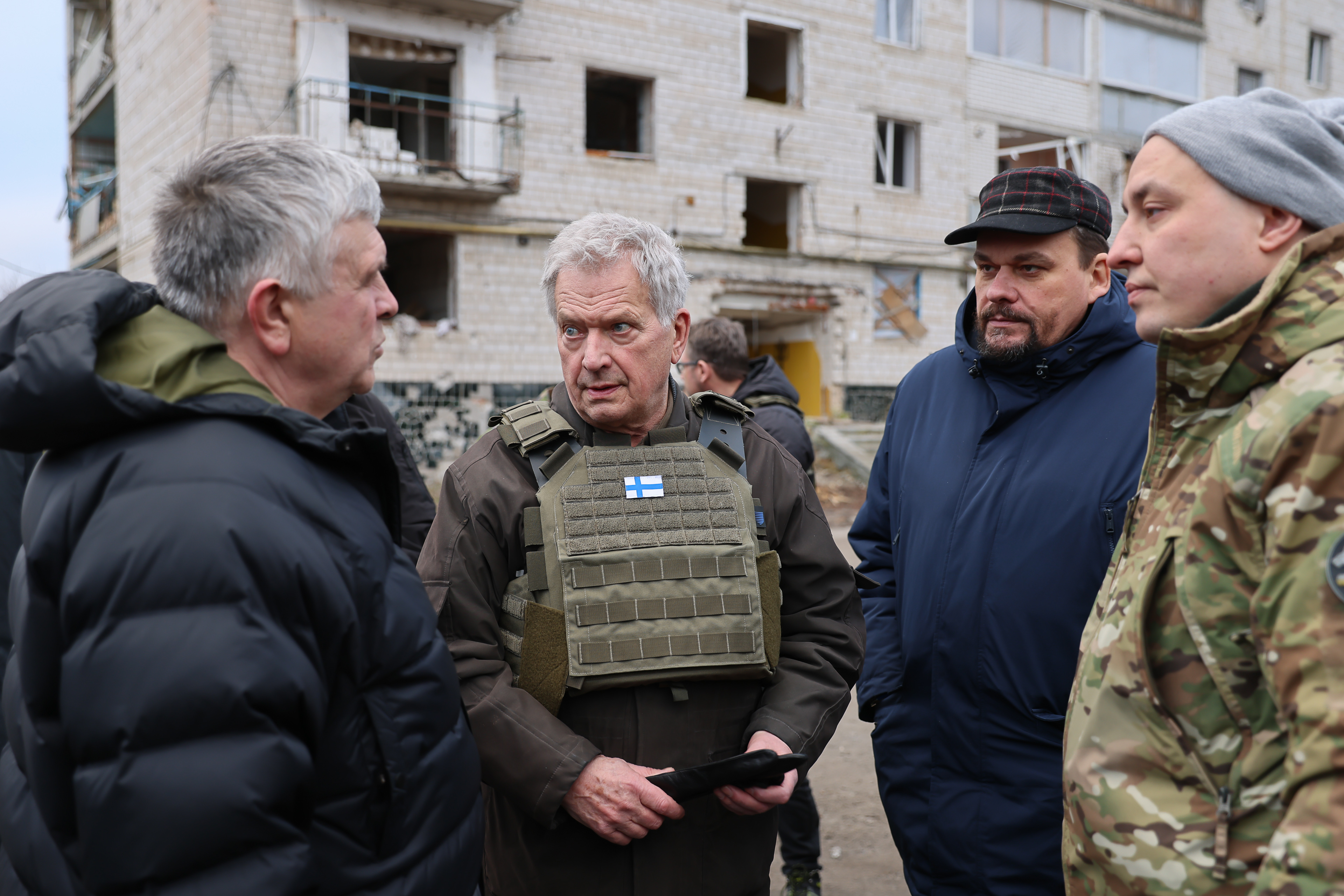 Before the meeting with President Zelenskyy and a joint working lunch with him, President Niinistö visited Borodianka and Bucha, where local authorities and soldiers defending the area presented him with the ravages of the war and told him about the suffering caused to civilians by the Russian invasion.