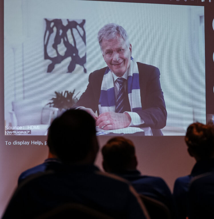 President of the Republic of Finland Sauli Niinistö met Finland’s national football team, the Huuhkajat, on Thursday, 3 June 2021. At the beginning of the meeting, which took place from Mäntyniemi through a video call, the President presented the Huuhkajat with the Key Flag Symbol of the Association for Finnish Work.