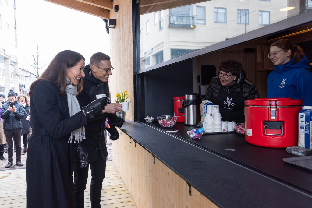 Vierailun päätteeksi vuorossa oli torikahvit ja kansalaistapaaminen Joensuun torilla, jonne oli kerääntynyt paljon yleisöä.