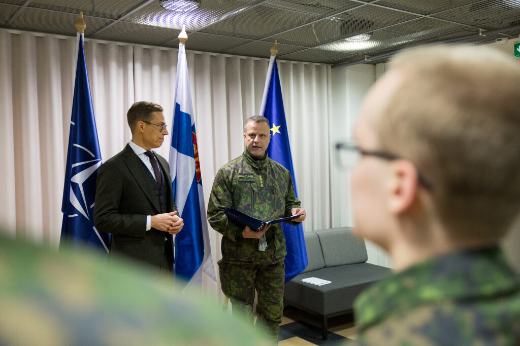 ”Sodan ja rauhan välinen raja on häilyvä, eikä vähiten kyberuhkien takia. Vierailu osoitti, että kykymme vastata kyberuhkiin on vahva, mutta haasteetkin suuria”, presidentti totesi tarkastuskäynnistä.