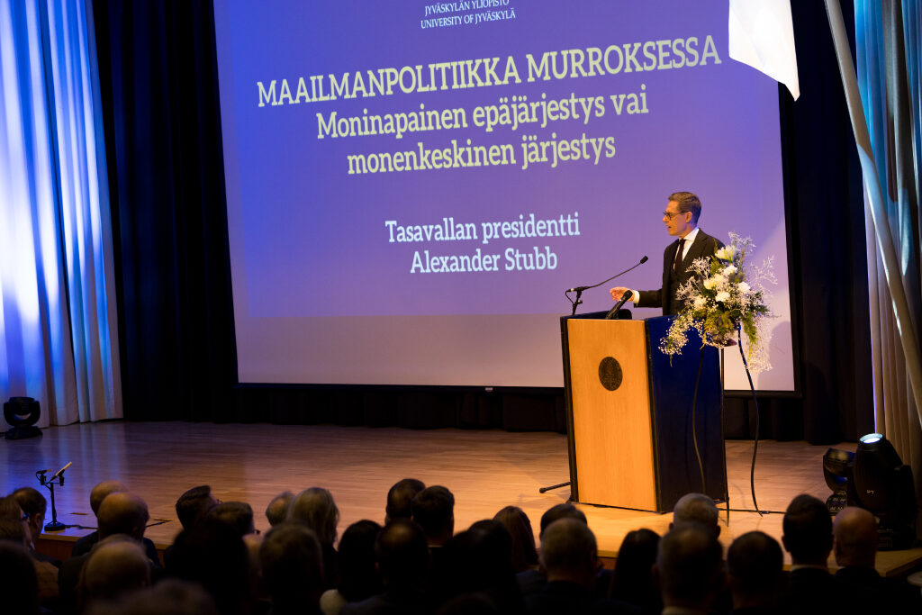 ”Meidän tulee siirtyä moninapaisesta epäjärjestyksestä kohti monenkeskistä järjestystä. Se tulee vaatimaan vallan uusjakoa”, sanoi presidentti Stubb.
