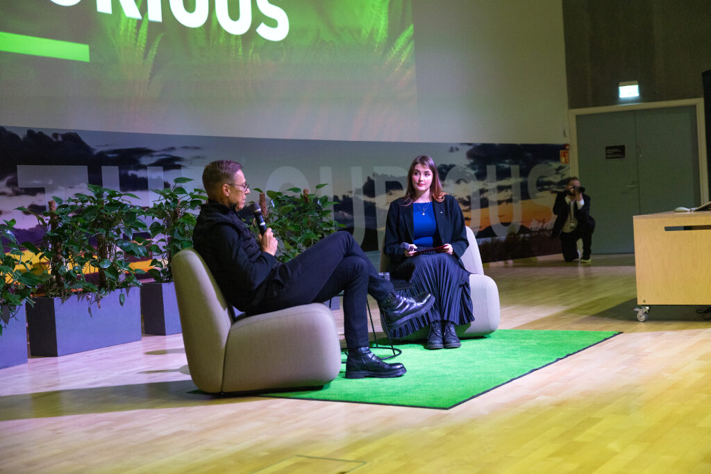 Yliopistokierroksen jälkeen presidentti tapasi kansalaisia LUT-yliopiston Viipuri-salissa, jossa presidenttiä haastatteli LUT-yliopiston ylioppilaskunnan puheenjohtaja Katja Immonen. Keskustelun aiheina olivat maailmanpolitiikka, ilmastonmuutos sekä koulutuksen merkitys yhteiskunnassa.